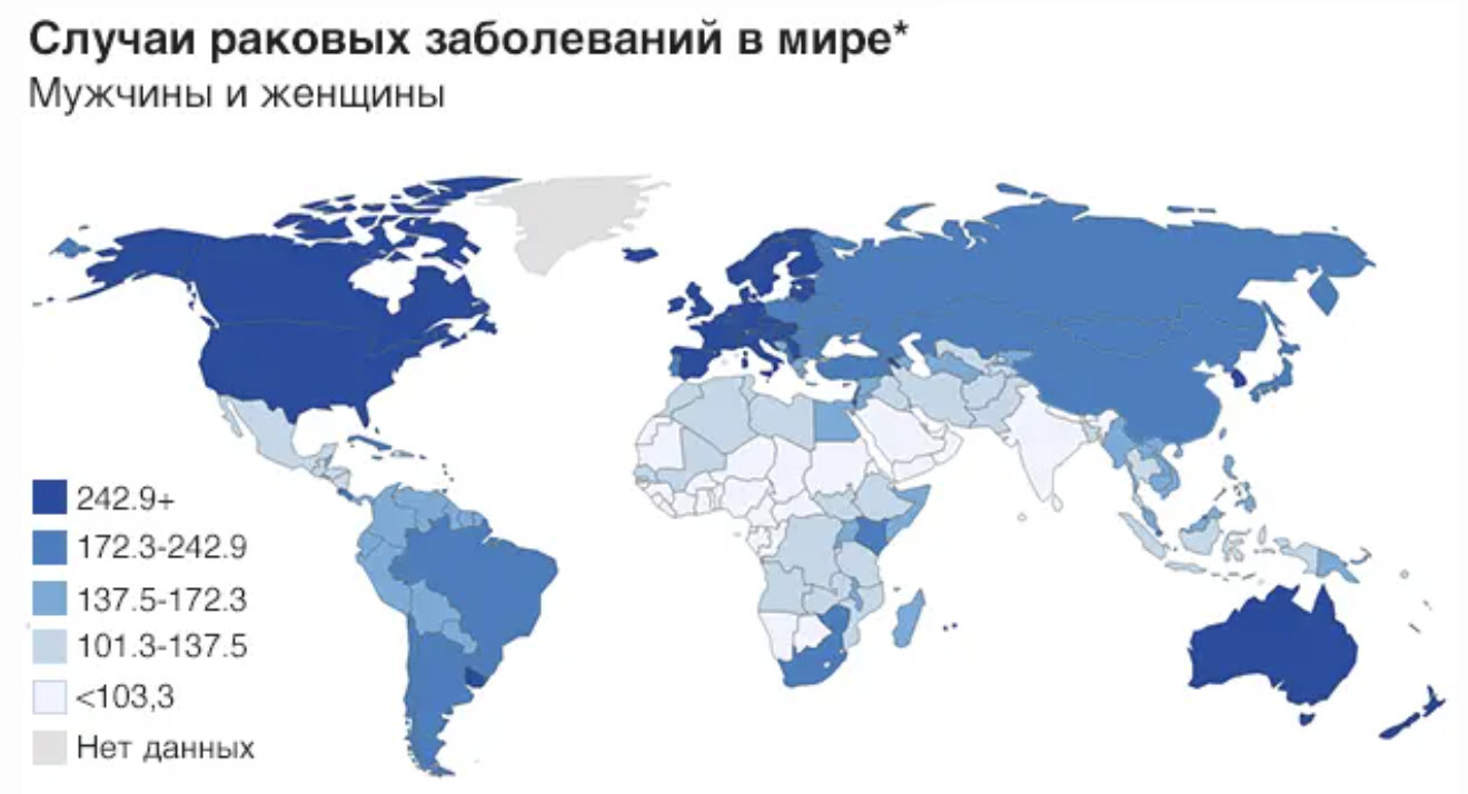 Обратите внимание на количество заболеваний раком по странам.