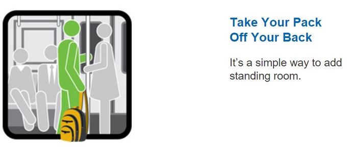 Подобные постеры наклеены в вагонах подземки. Просто и наглядно поясняется, что не надо делать в метро и почему. По-моему очень доходчиво.