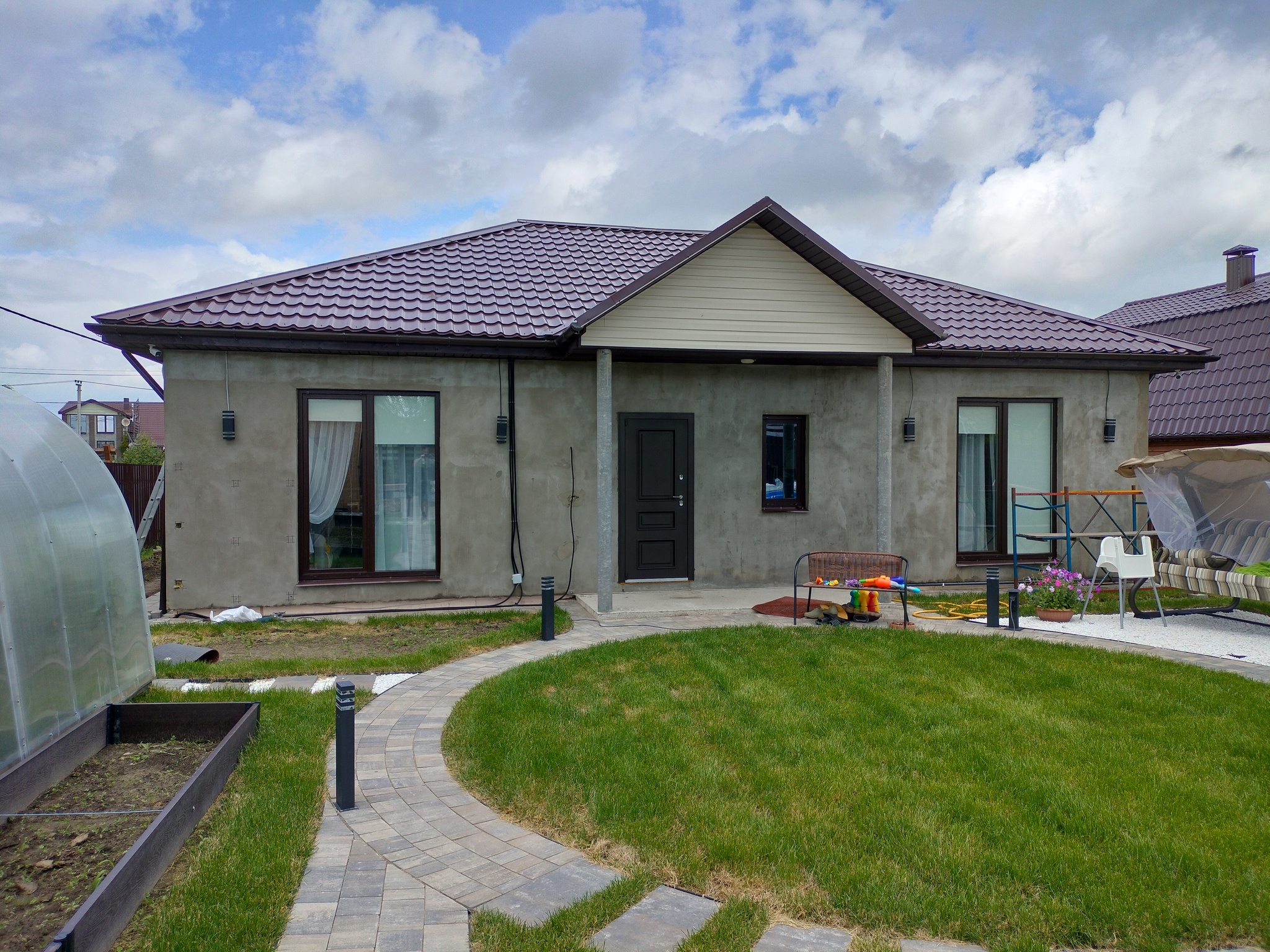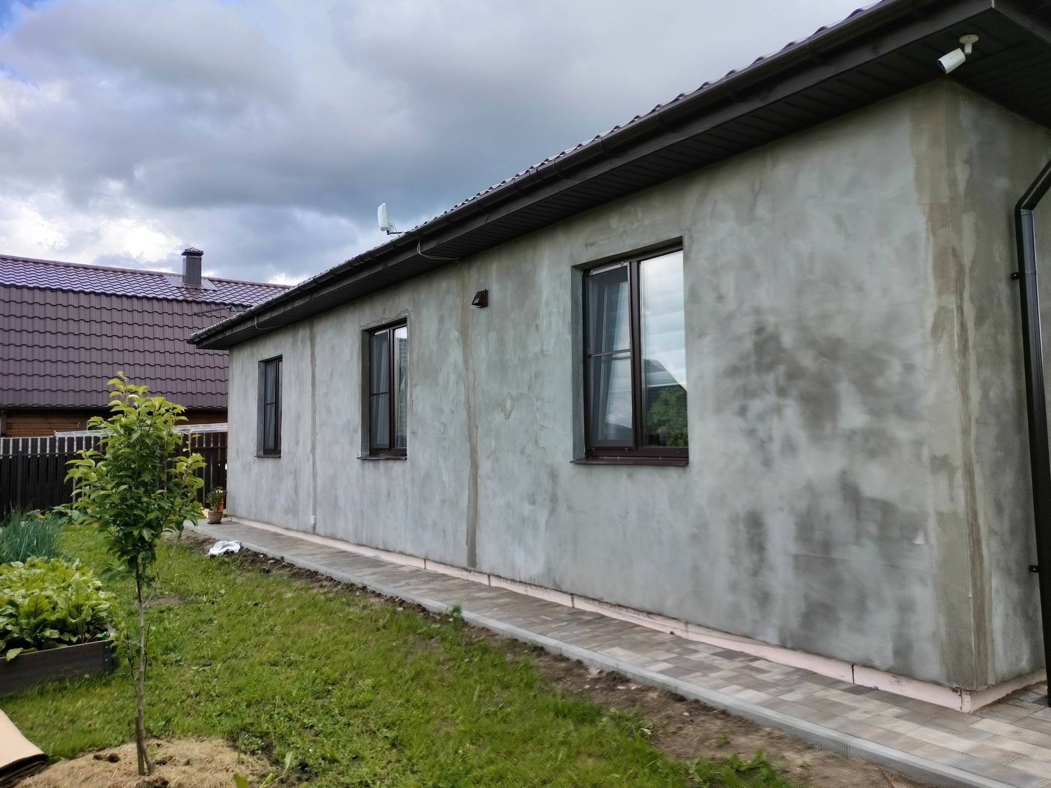 Изначально заказчики планировали сделать штукатурку. Но потом передумали и решили вентфасад. Соответственно дом уже утеплëн.