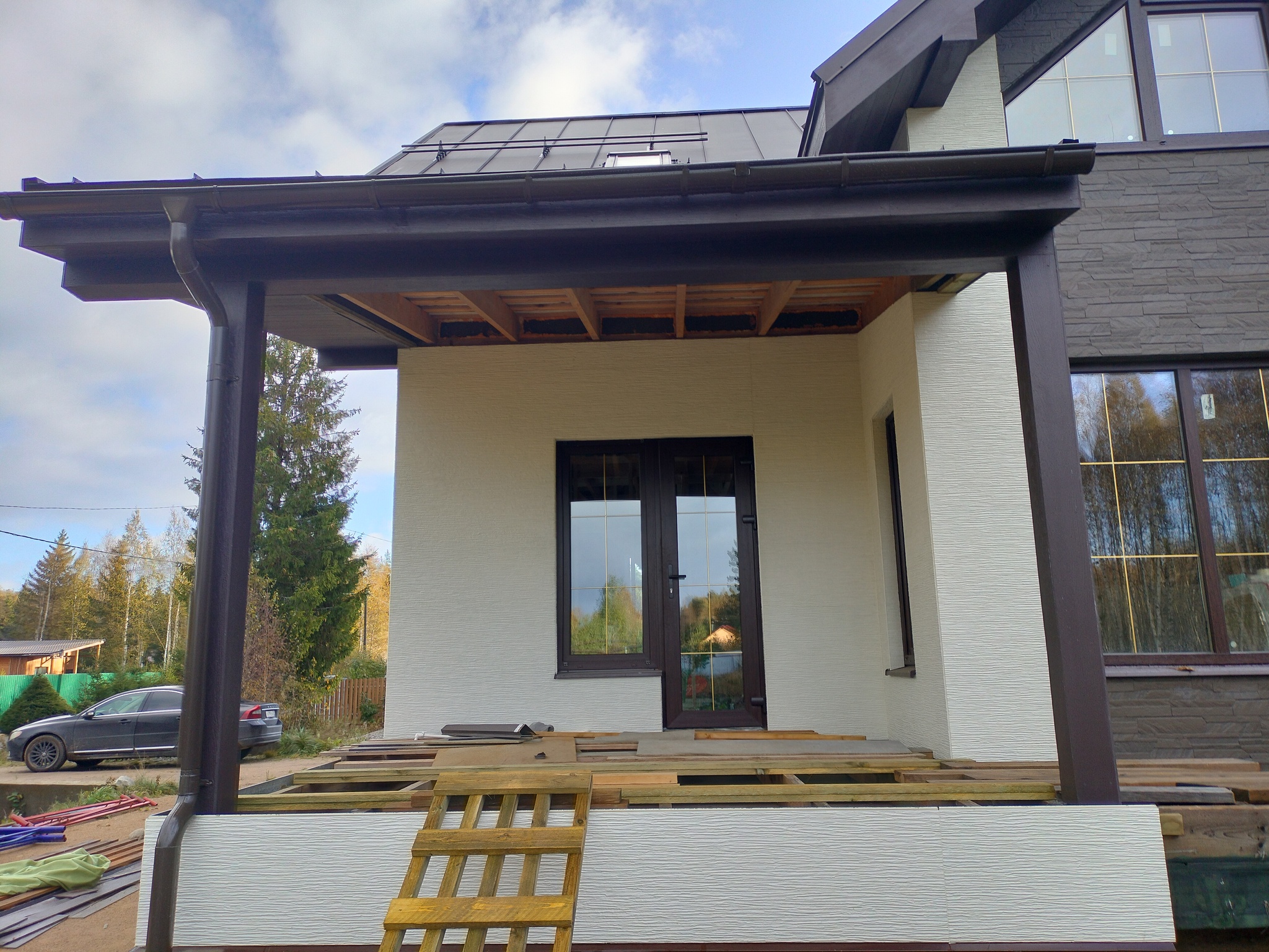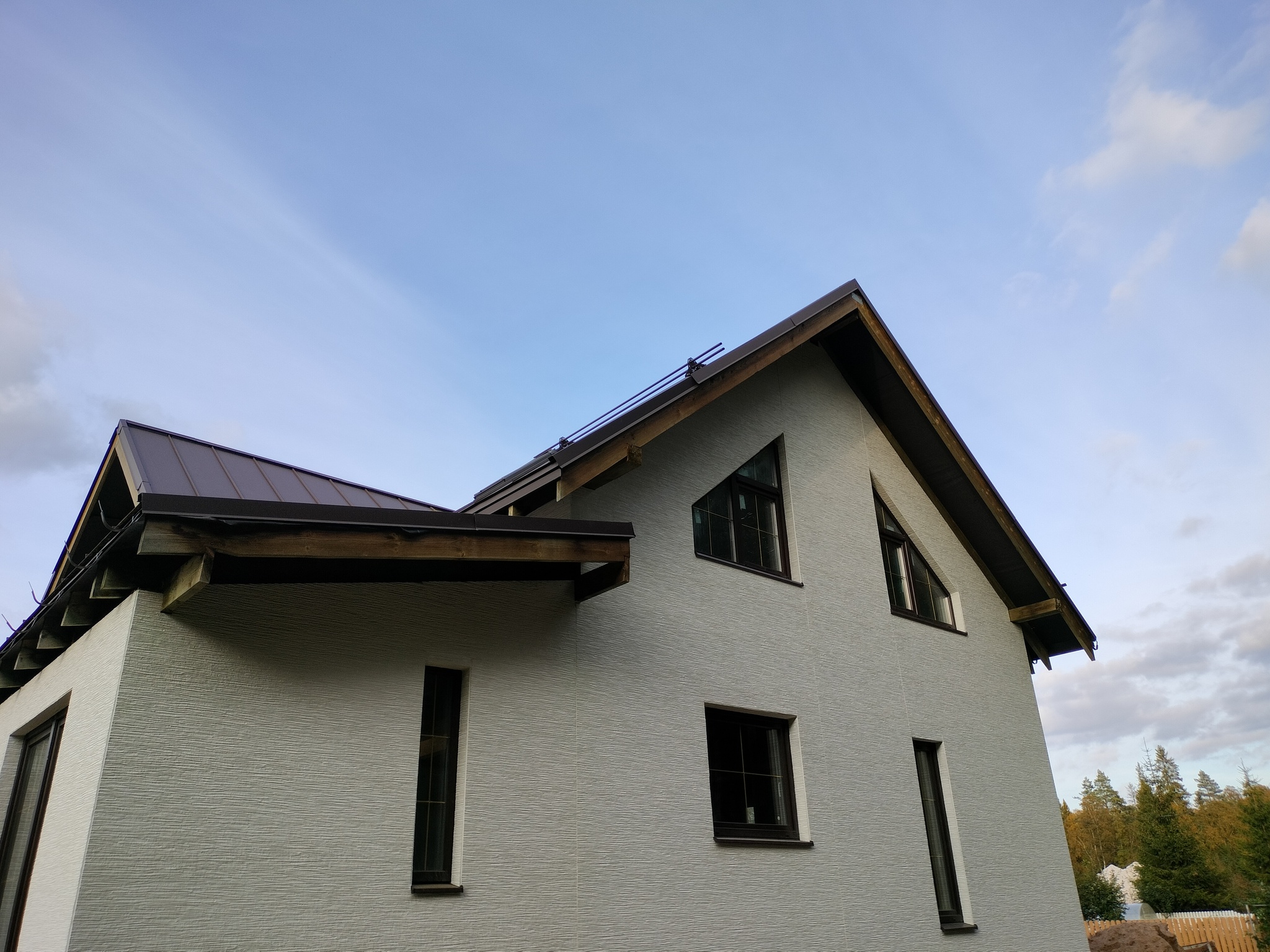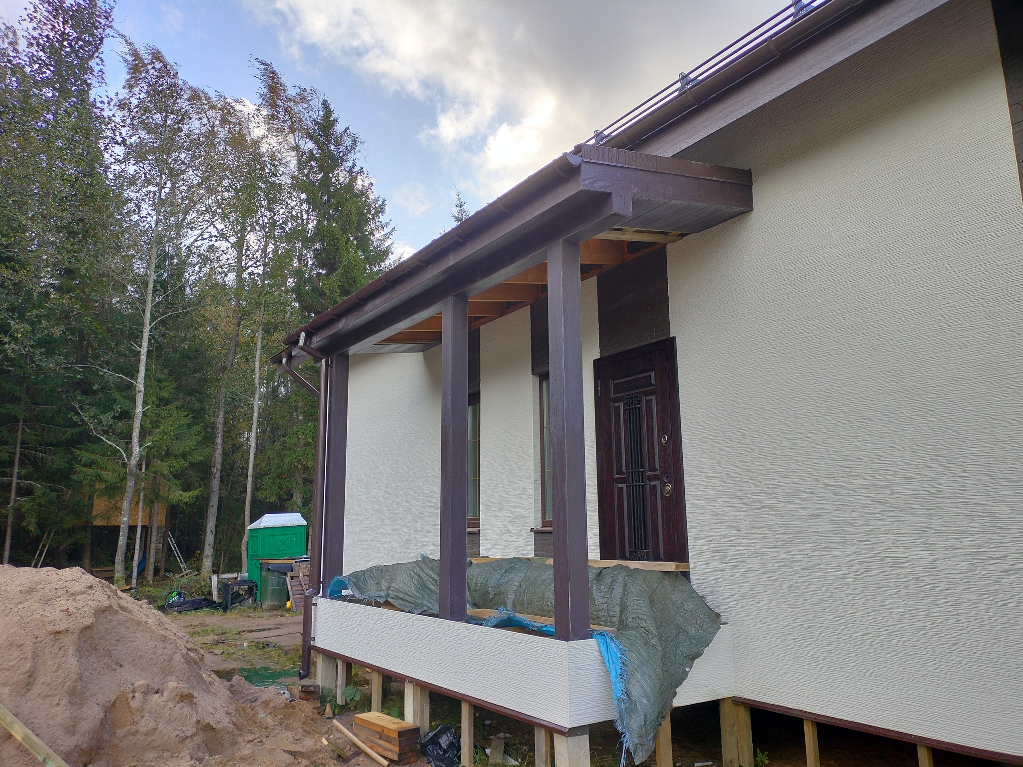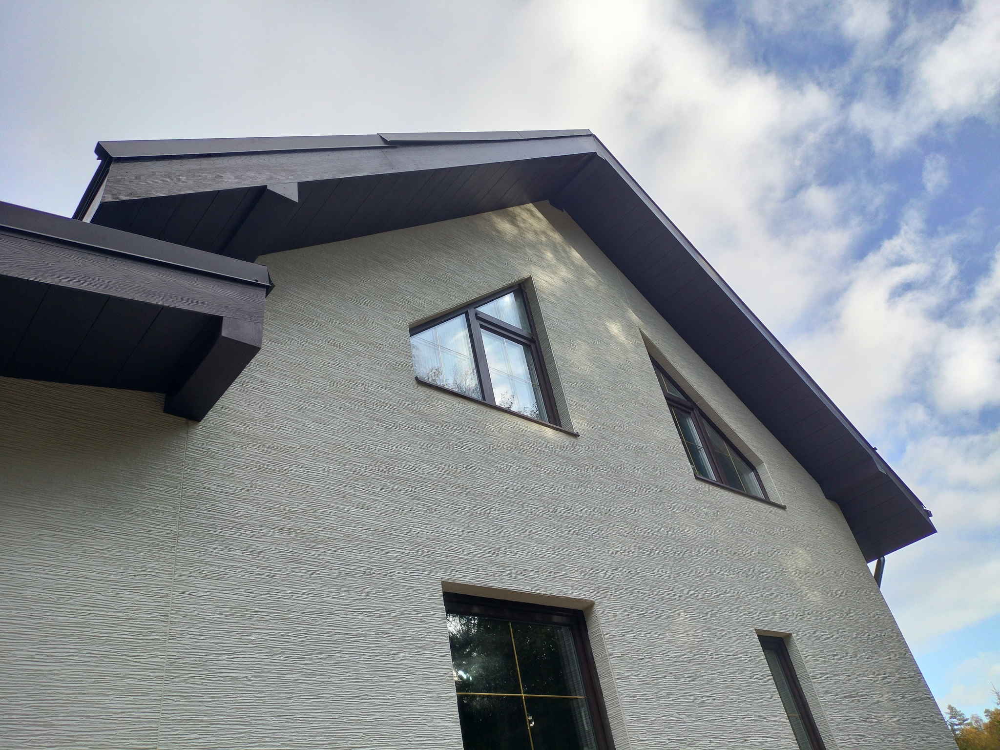 Доброго времени суток Уважаемые Пикабушники. В этот раз отделка только свесов, ну и балок. Фасад уже был готовый. Ну в общем обо всём по порядку.