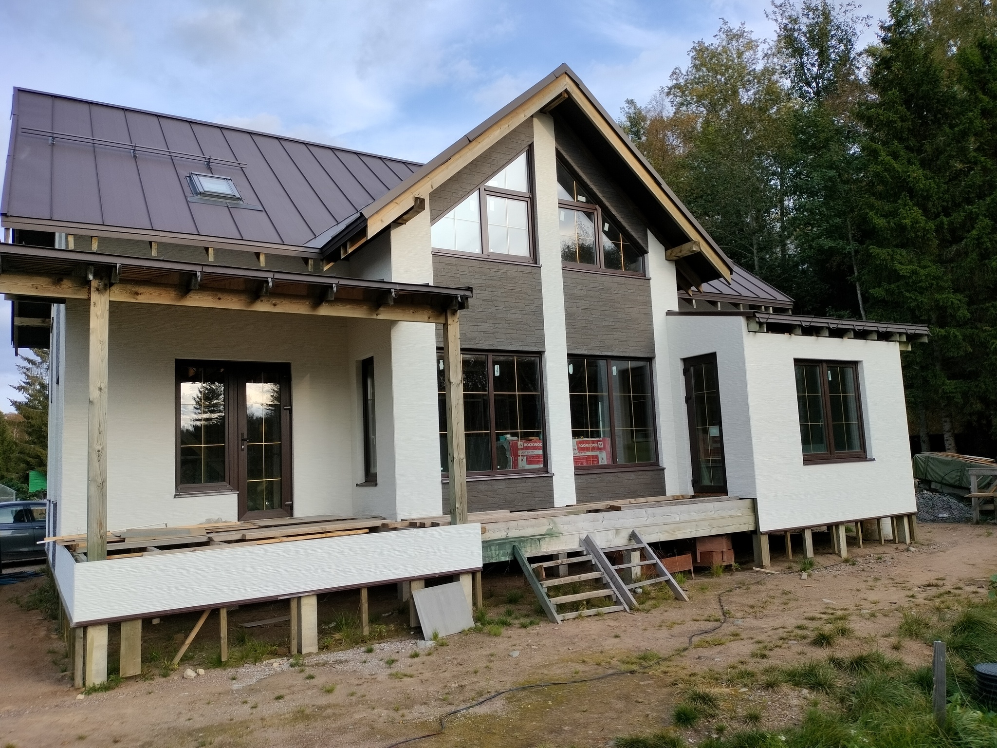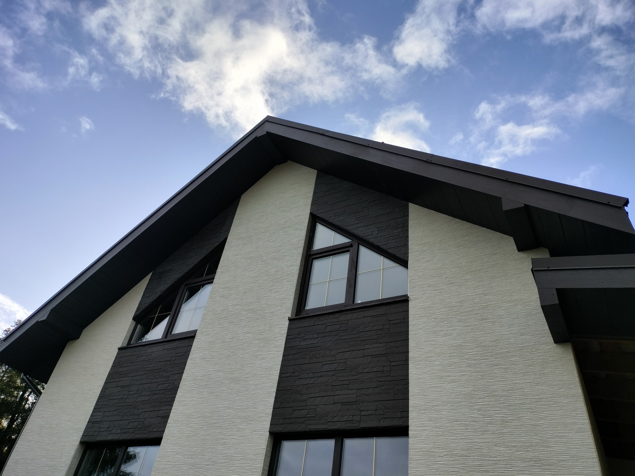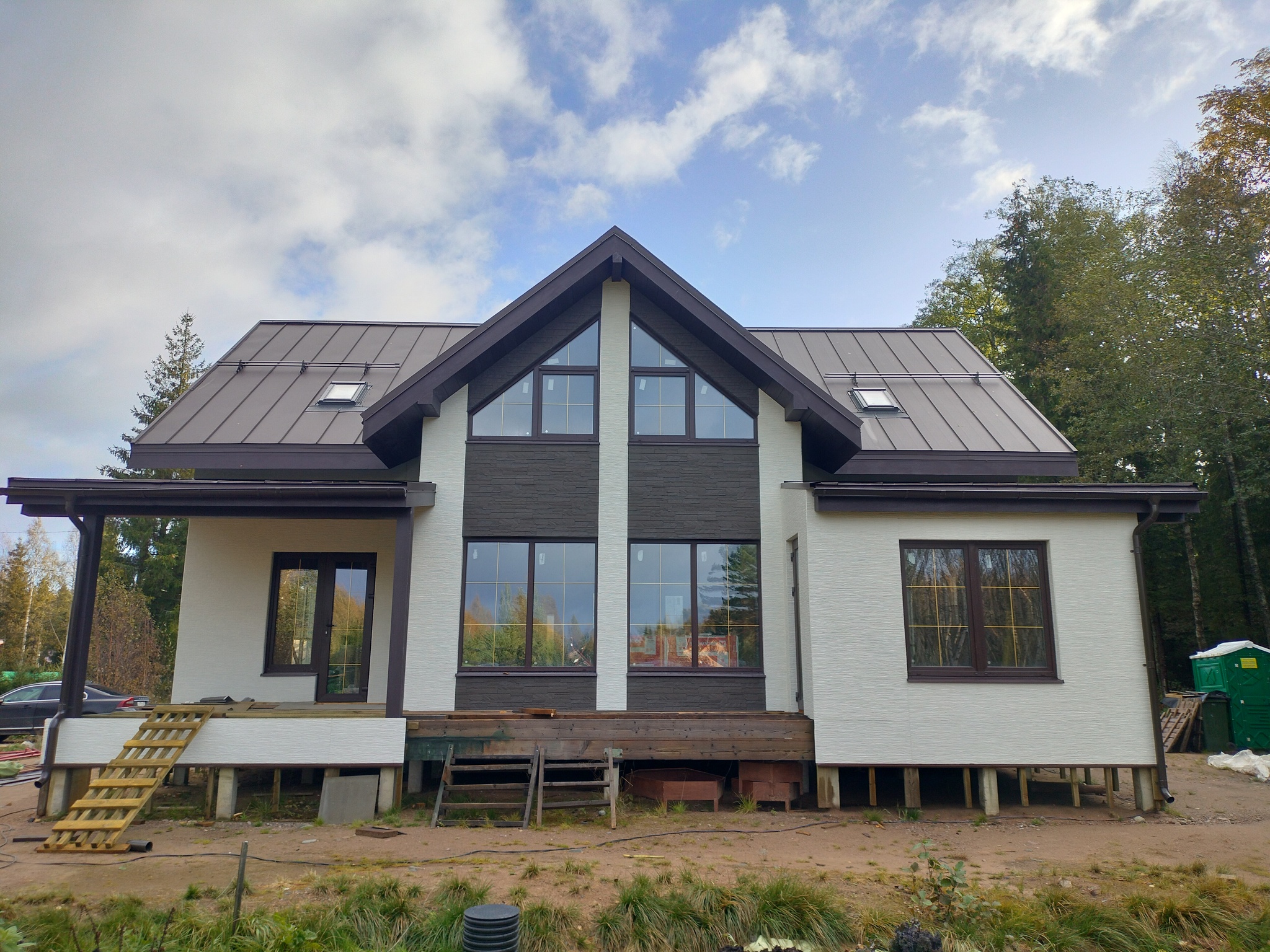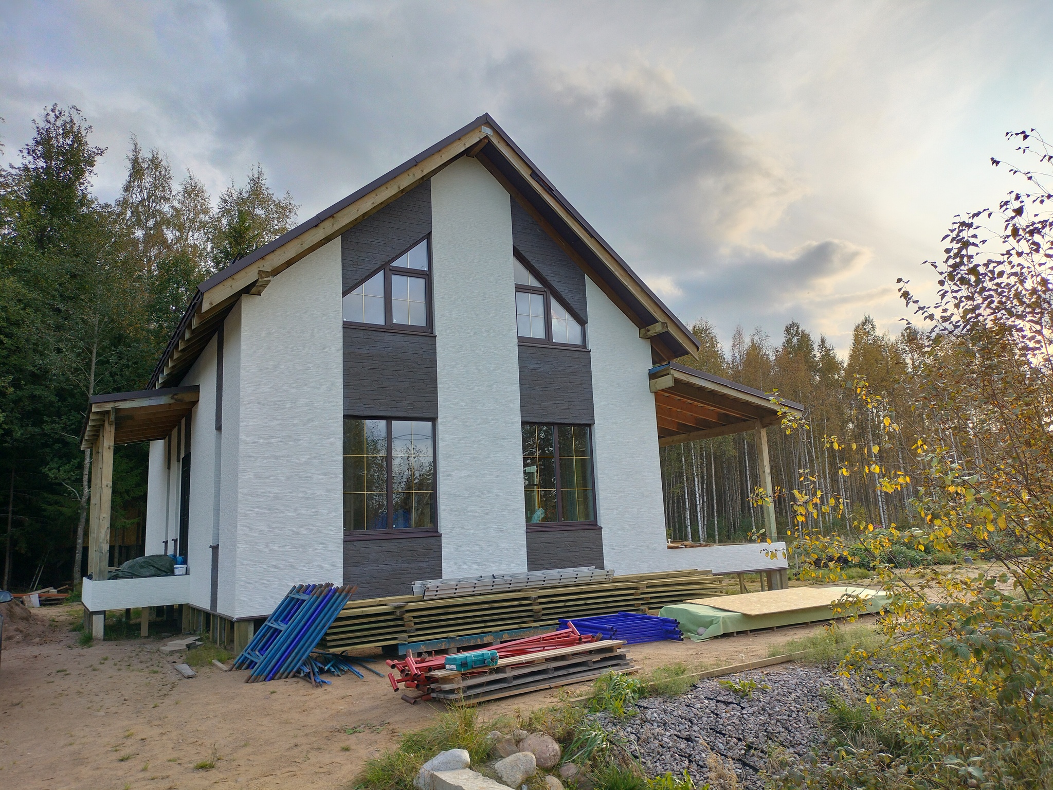 Доброго времени суток Уважаемые Пикабушники. В этот раз отделка только свесов, ну и балок. Фасад уже был готовый. Ну в общем обо всём по порядку.