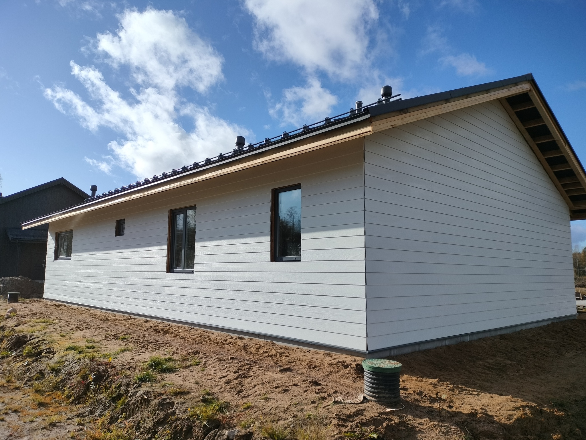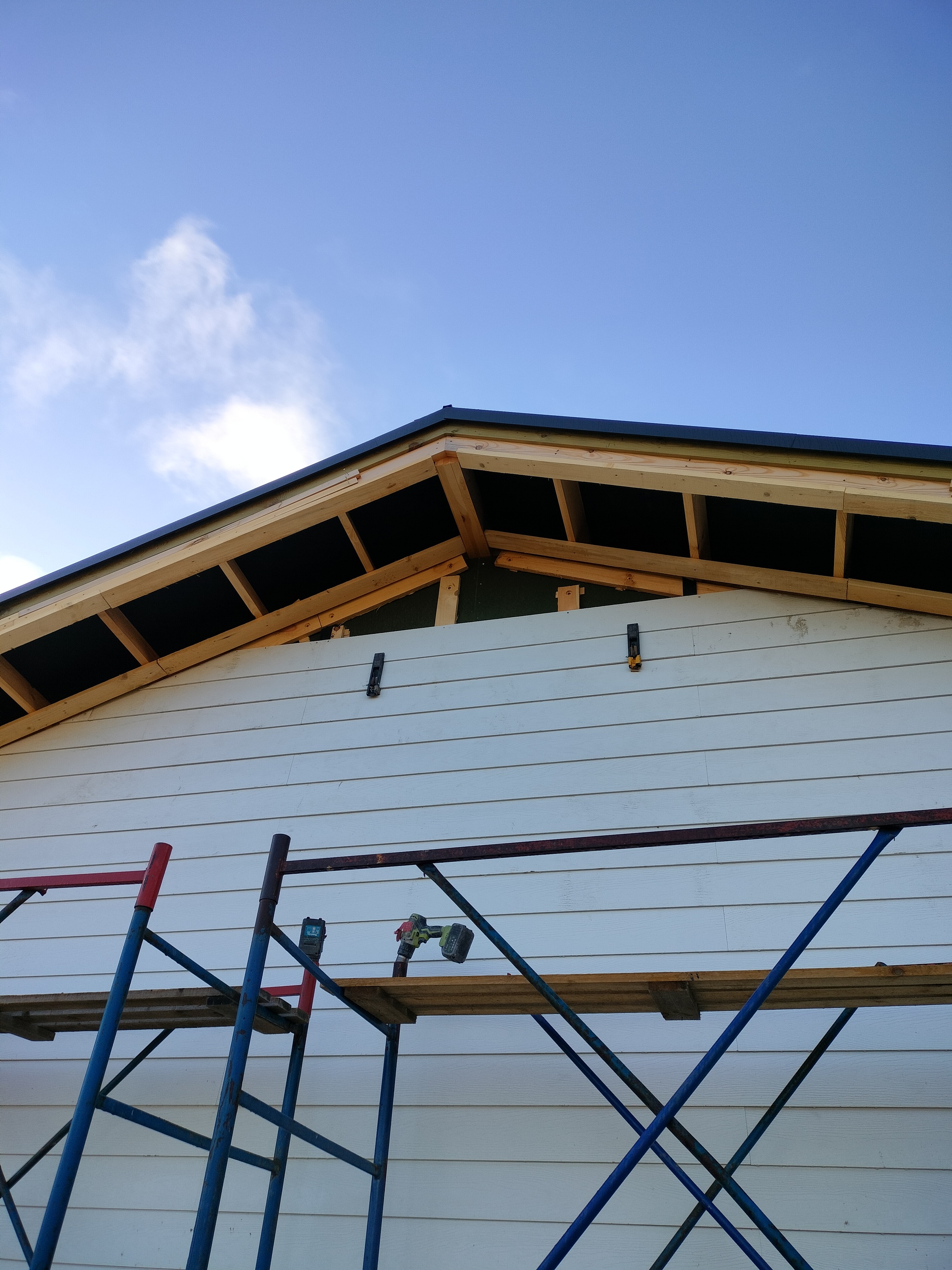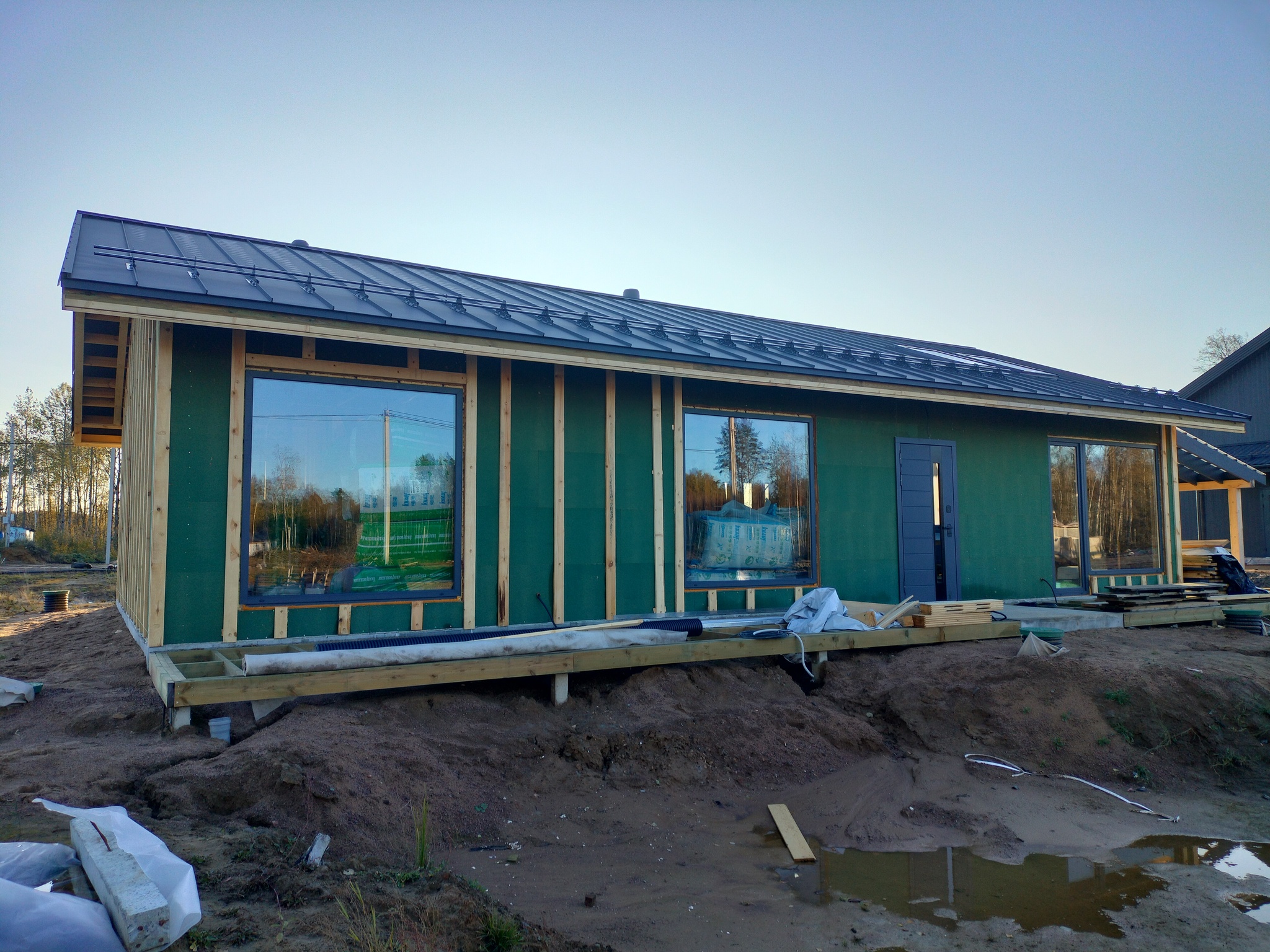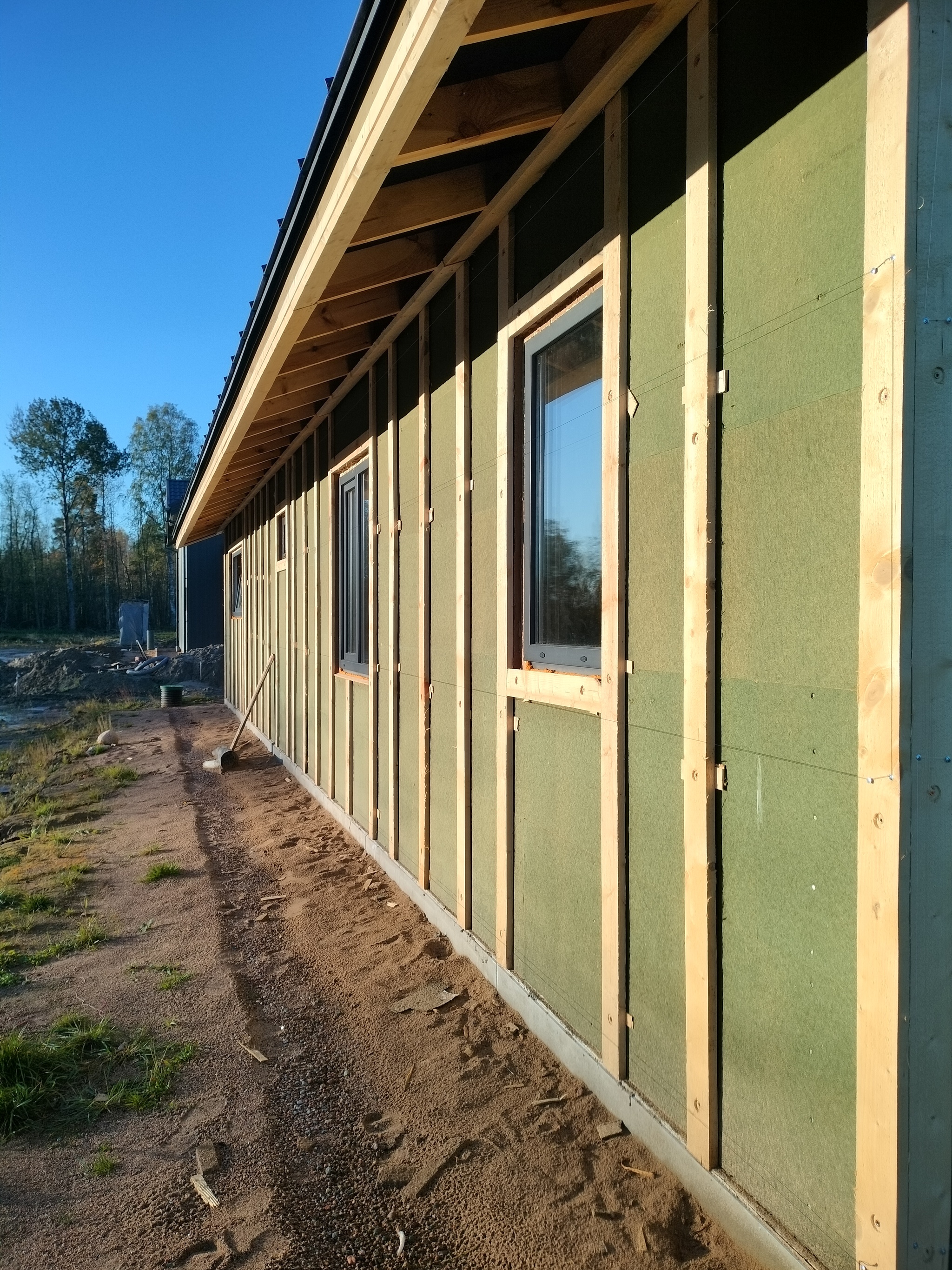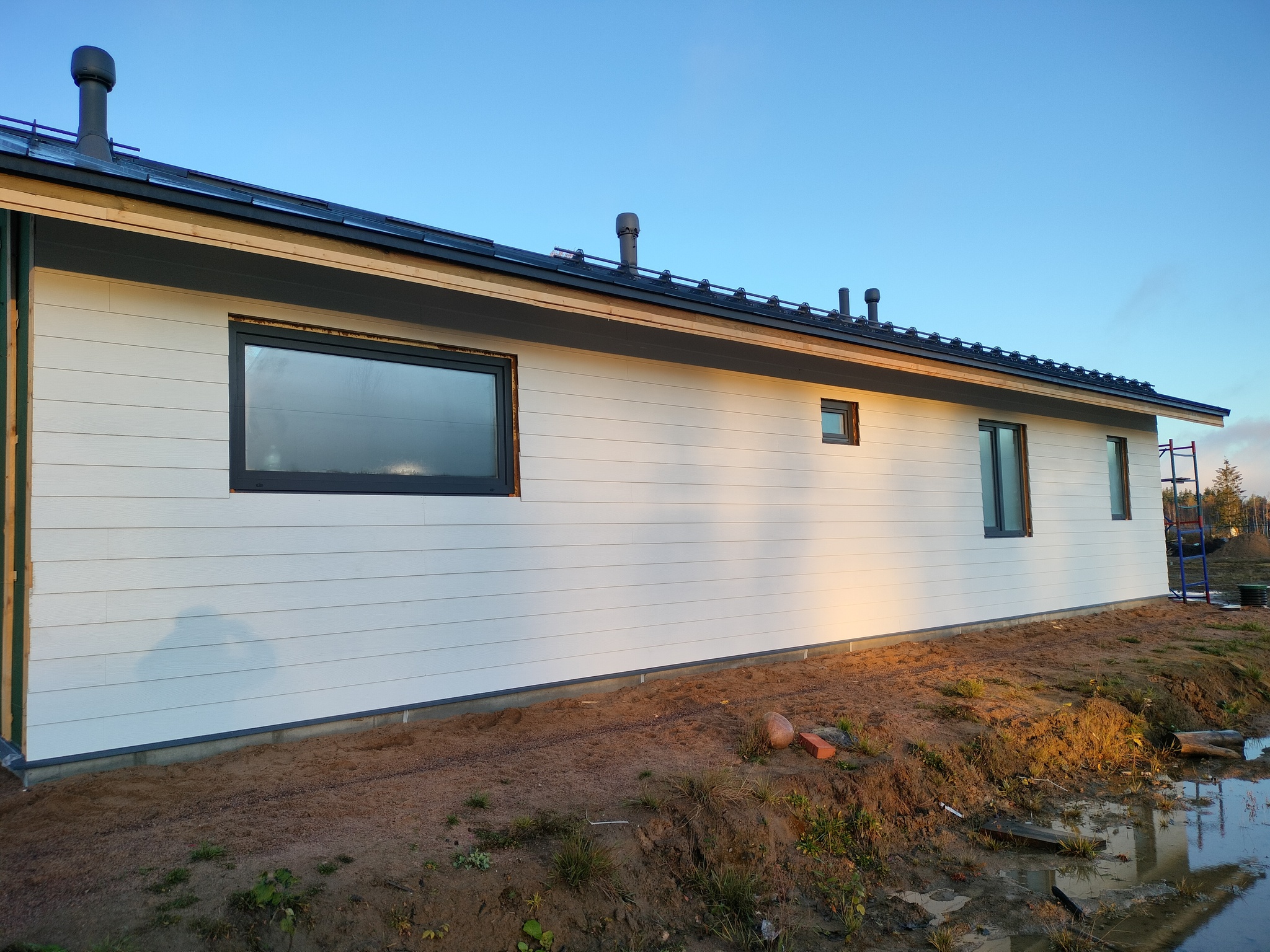 Смонтировал сетку от грызунов, отбил ноль, смонтировал отливы, стартовую и начал монтировать панели. Также добавил соединители.