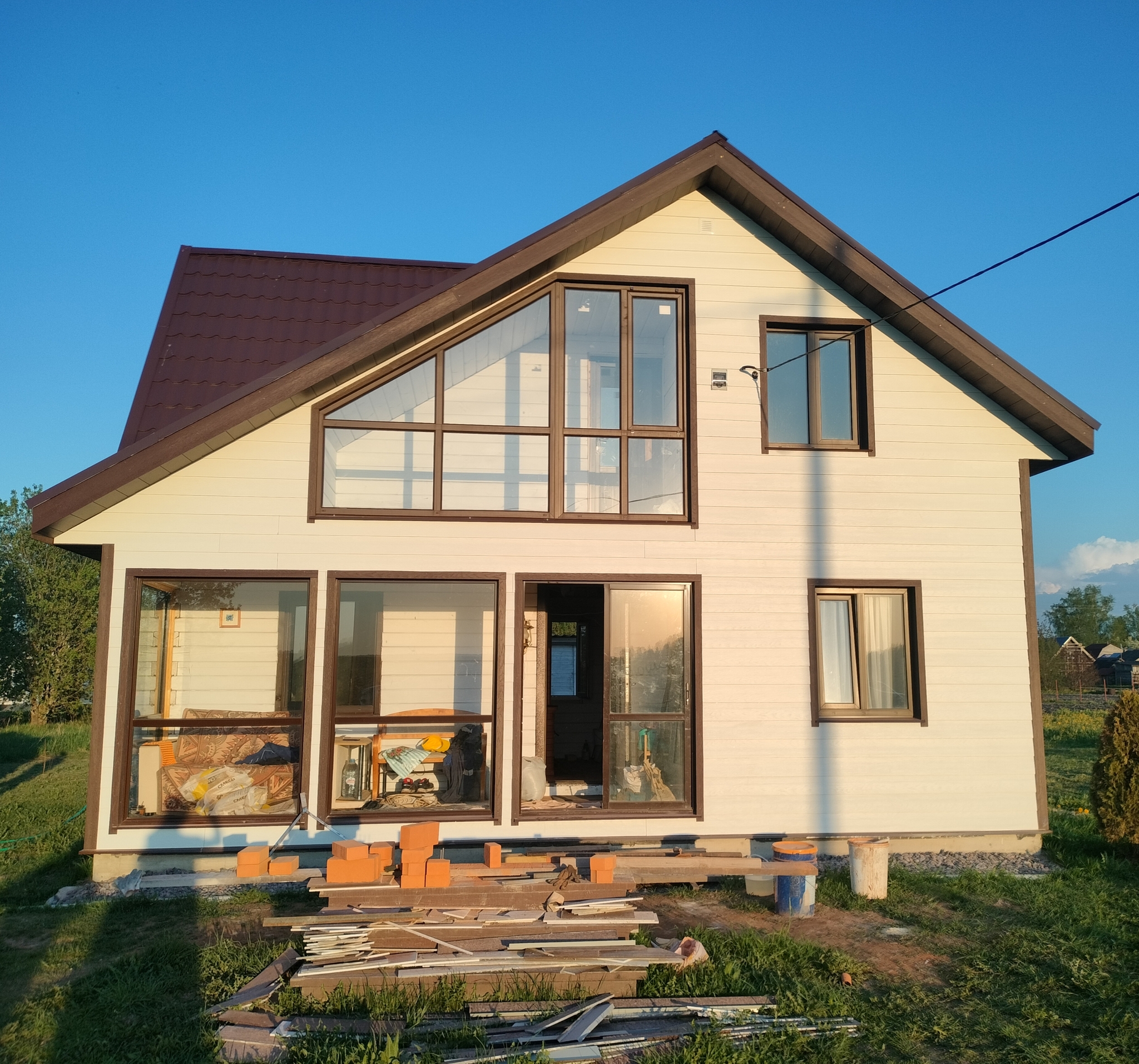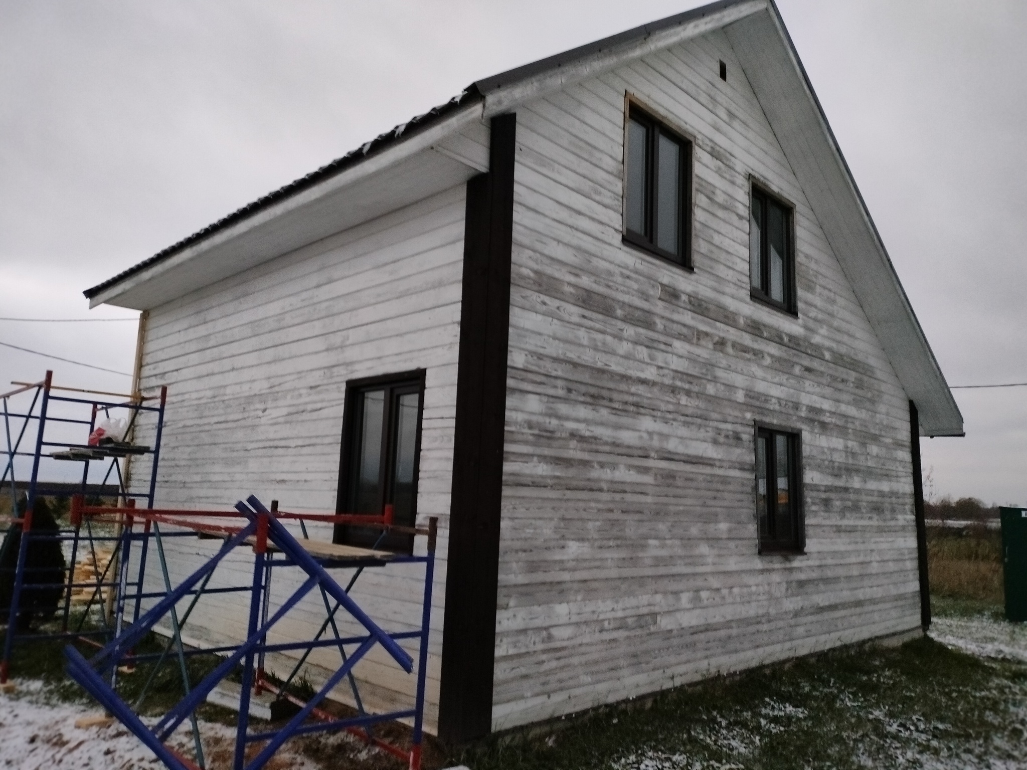 Ну и собственно фактически на этом этапе я забираю заработанные деньги и для меня объект закончен. Т.к нет необходимых материалов для дальнейшей работы. Вернее сказать их обещали доставить,но сроки переносились,а потом вообще стало непонятно когда их ждать. Сам фасад обшивал уже другой человек. С заказчиком мы в прекрасных отношениях т.к тут нет ни моей вины, ни его. Периодически заезжаю в гости.