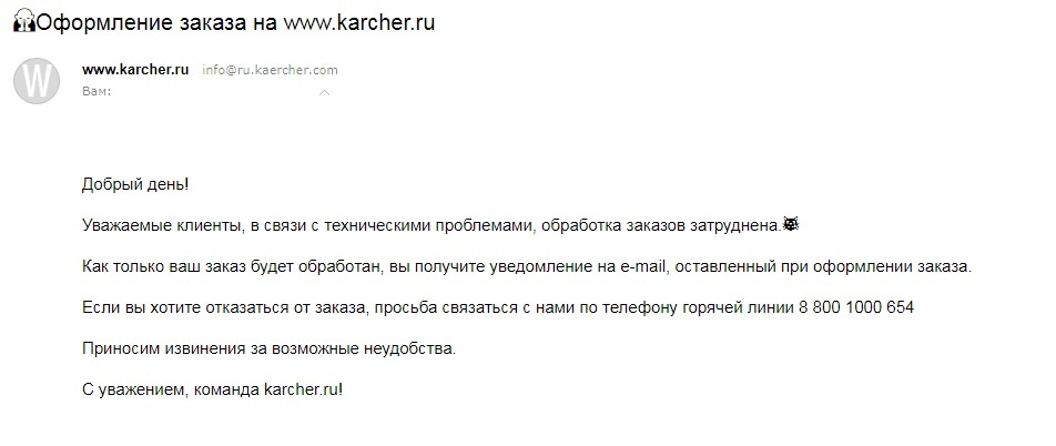 Через два дня пришло ещё одно письмо, о том что обработка заказов затруднена и придётся какое-то время подождать. Конечно новость не радостная, но всякое бывает