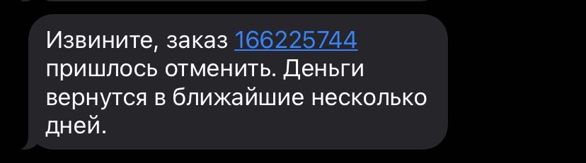Почему пришла смс, что готовы привезти заказ, а потом отменили? Возможно не хотят портить статистику по логистике, чтоб начальство не ругало? Я не знаю и если честно, не очень то хочу разбираться. Я хочу заплатить деньги и получить качественный сервис. А получаю тарелку говна с подписью "приятного аппетита" - от поддержки Я.М.