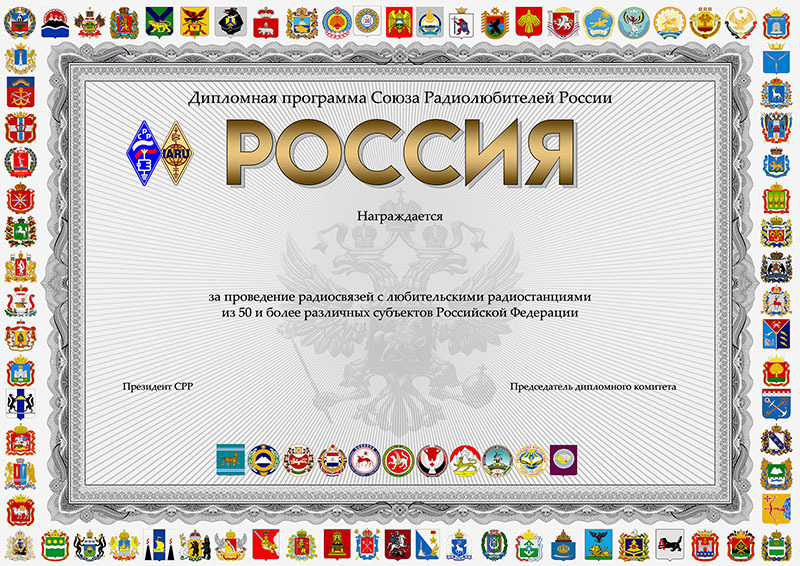 Есть и национальные дипломы. Например "Россия", выдается за связь с 50 субъектами федерации