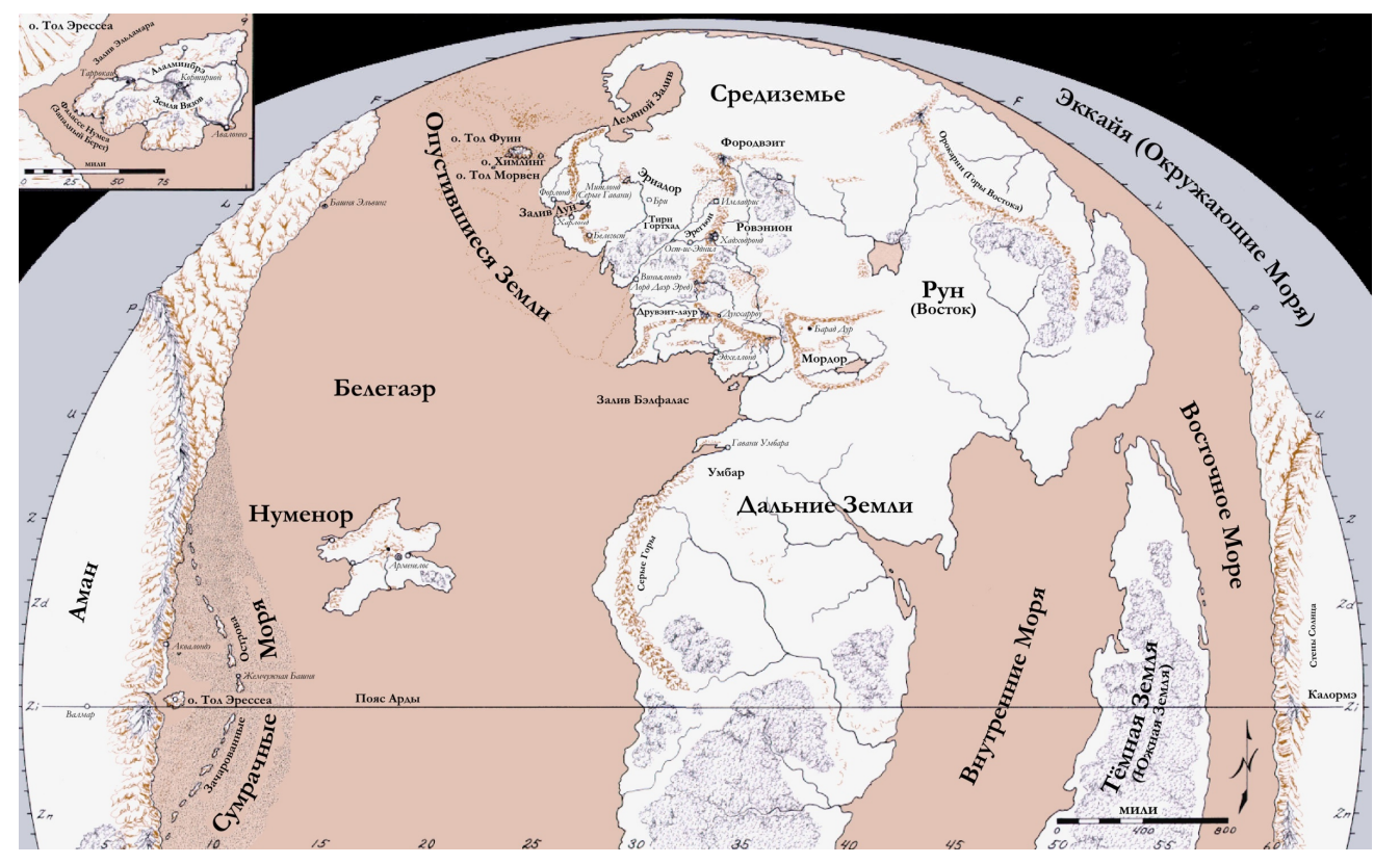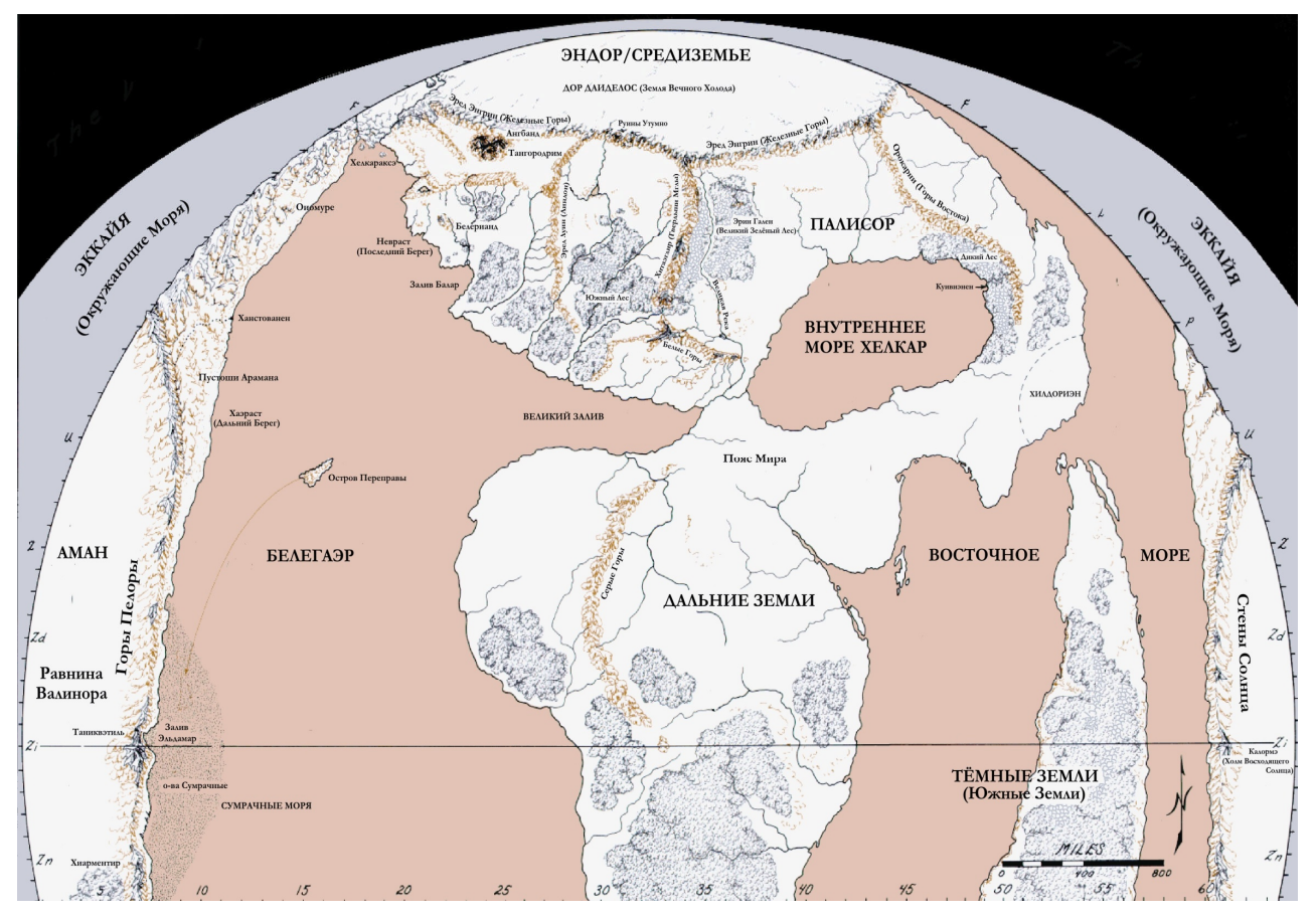 А теперь давайте вспомним, что по мифологии Арды изначально она была плоской. Это накладывает свои ограничения! А ещё вспомним, что в конце первой эпохи, когда Моргот пал, Белерианд (львиная доля Средиземья) затонул, а оставшуюся часть так переебало катаклизмами, что мир изменился. А в конце Второй эпохи мир вообще скруглили нахуй, что у местных картографов вообще должно было вызывать кровавый понос и истерику!