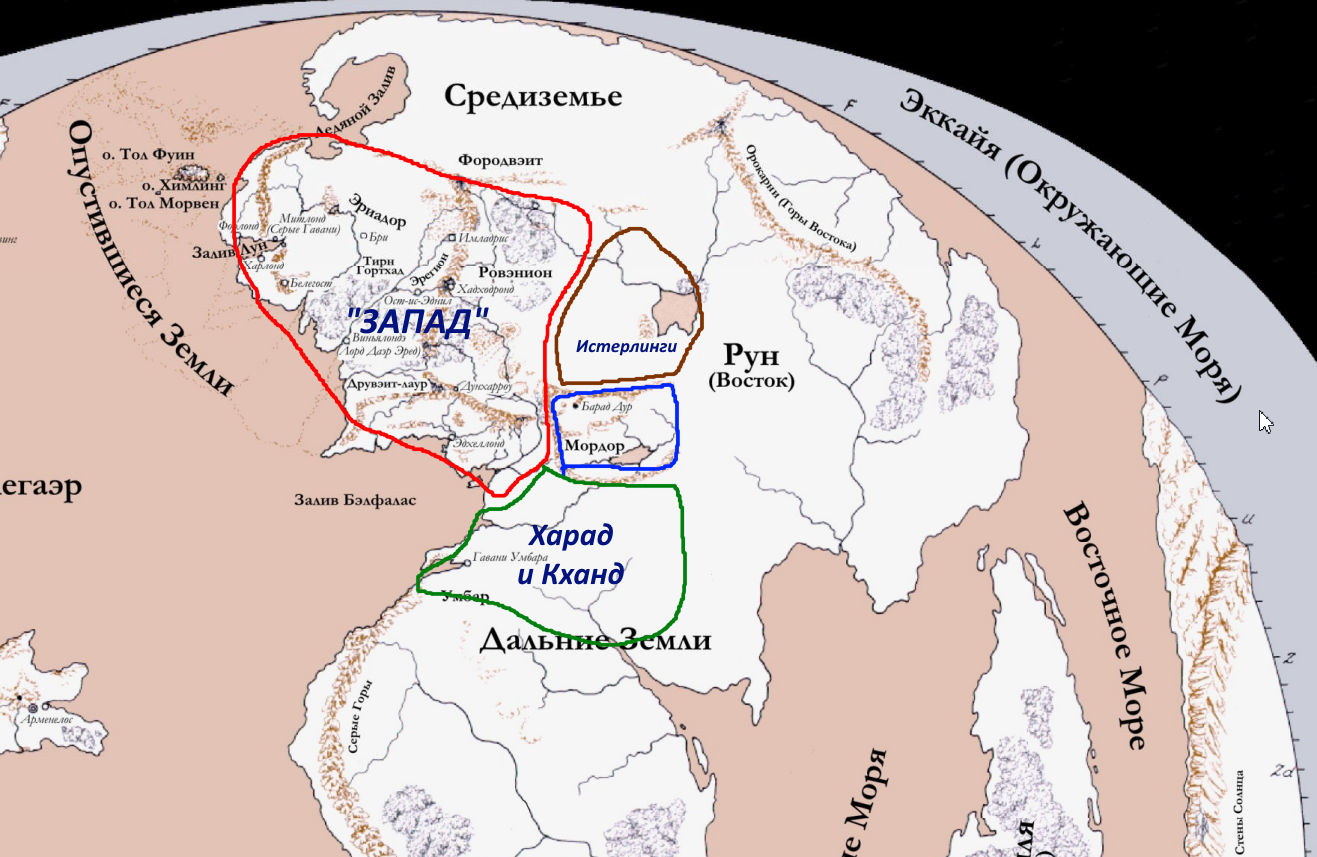 Сколько там народов? Какие они? Чем они занимаются? Это очень хорошие вопросы, ведь тот же Кханд, что находится к югу от Мордора, выставлял каких-то индусских латников на поле боя. Что же там дальше к востоку, мы даже не представляем. И Толкин, как настоящий строитель мира, не говорит нам об этом, представляя право догадываться самим и строить предположения по тому, что он оставил. Орды кочевников, каннибалы или золотые города с высокими пирамидами - все это может нарисовать ваше воображение, и оно имеет право на жизнь как Кольцо Тьмы Перумова - как фанфикшен, но строгий и не переписывающий канон.
