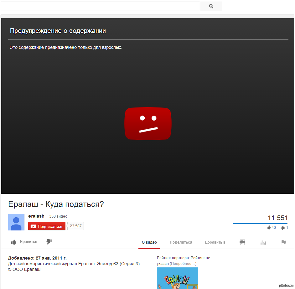 45 KarlMarks1818 11 лет назад O RLY? "Это содержание предназначено только для взрослых." что с этим миром не так? [моё] Ералаш не Тег Дети Лучше Советую посмотреть +100500