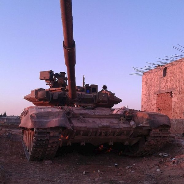Танк, естественно не выкрашен в розовый. Он стандартного для сирийской армии песочного цвета