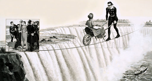 В конце 19-го века в Америке был знаменит французский канатоходец Чарльз Блондин( настоящее имя Jean Franois Gravelet). Он прославился тем, что много раз пересекал Ниагарский водопад по натянутому над ним канату. Он делал это с завязанными глазами,переносил различные грузы, и вот однажды он решил пересечь Ниагару , толкая перед собой тачку. Собралась огромная толпа. И Блондин задал вопрос-" Верите ли вы в то, что я смогу пересечь Ниагару по канату, толкая перед собой тачку ?"