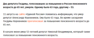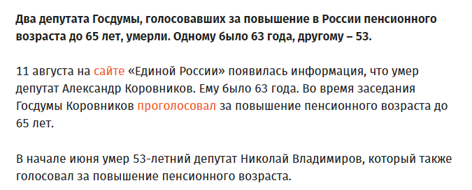 Вот Доренко выступал против пенсионной реформы и подох прямо на любимом байке. Вместо урчания мотора и опьяняющей скорости - тихое скольжение на обочину и разрыв аорты.