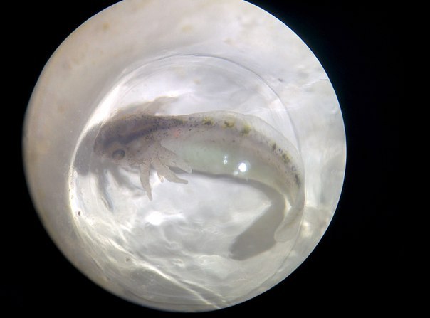 Все мои усилия по созданию оптимальных условий для содержания аксолотлей в итоге окупились тем, что на прошлой неделе самка отложила икру. А это как маленький бонус: личинка, день седьмой)