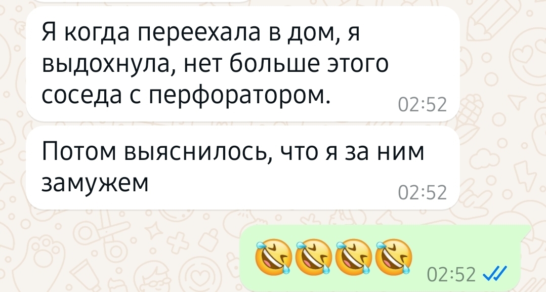 7 vovasan О соседнее с перфоратором 1 год назад [моё] Перфоратор Соседи Картинка с текстом Переписка Ещё 0