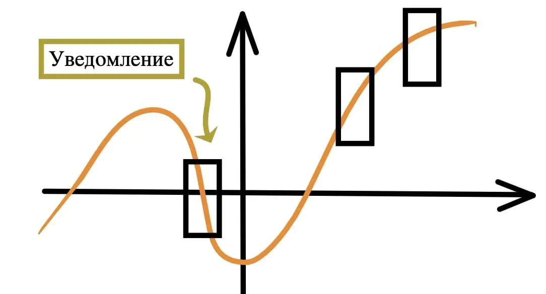 А затем самая интересная часть - разработка такой функции, которая позволяла бы отслеживать аномальные изменения цен котировок. Как я реализовал их? Не так давно я наткнулся на статью из курса математического анализа о равномерной непрерывности графика функции. Простыми словами: равномерно непрерывный график не имеет внезапных скачков или резких изменений — если изменения входных данных (например, времени) малы, то изменения значений функции (например, цены) также будут малы по всей области. Или график пересекает прямоугольники по боковым сторонам.