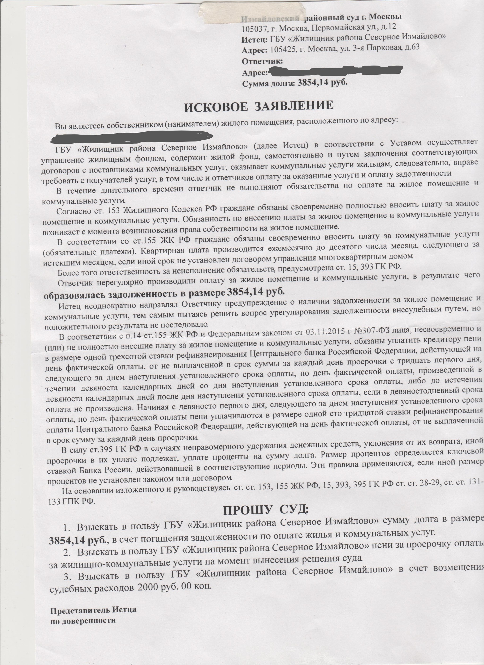 Вчера позвонила и рассказала, что указано в распечатке, которую ей выдали в МФЦ. Долги по чуть-чуть (по 200р, по 300) накапливались значительное время. Недоплачивали, дескать, за воду. А в один месяц прямо по всем пунктам недоплата, общей суммой в 1,5т.р. Итого, долга накопилось на 4 т.р. почти. Самое интересное, что последняя недоплата (та самая большая) датируется 2015 годом. После этого никаких долгов не значится.