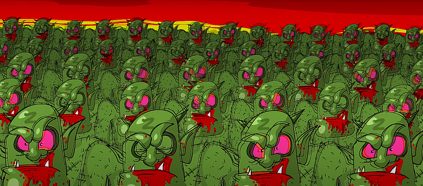 Вот так они изображены. Орки, безо всякой иронии. А ещё как зомби и скелеты. Сами глянете, если захотите (если ещё не видели).