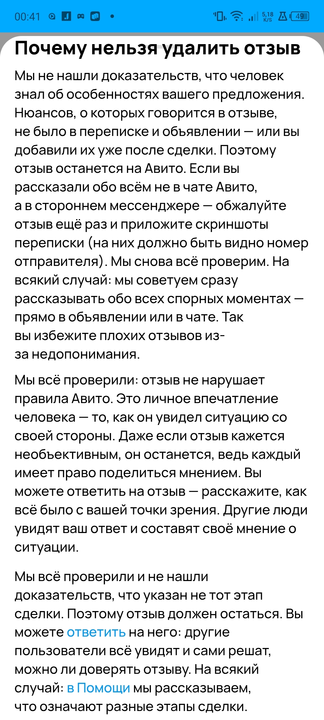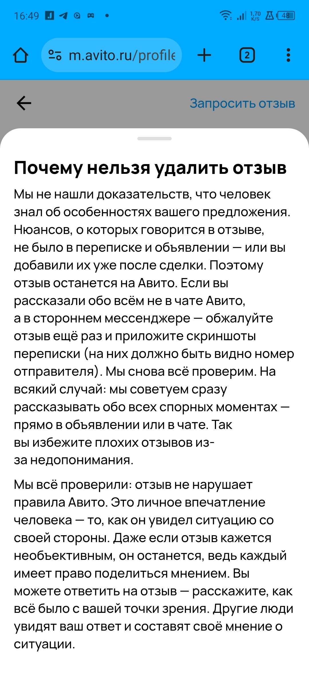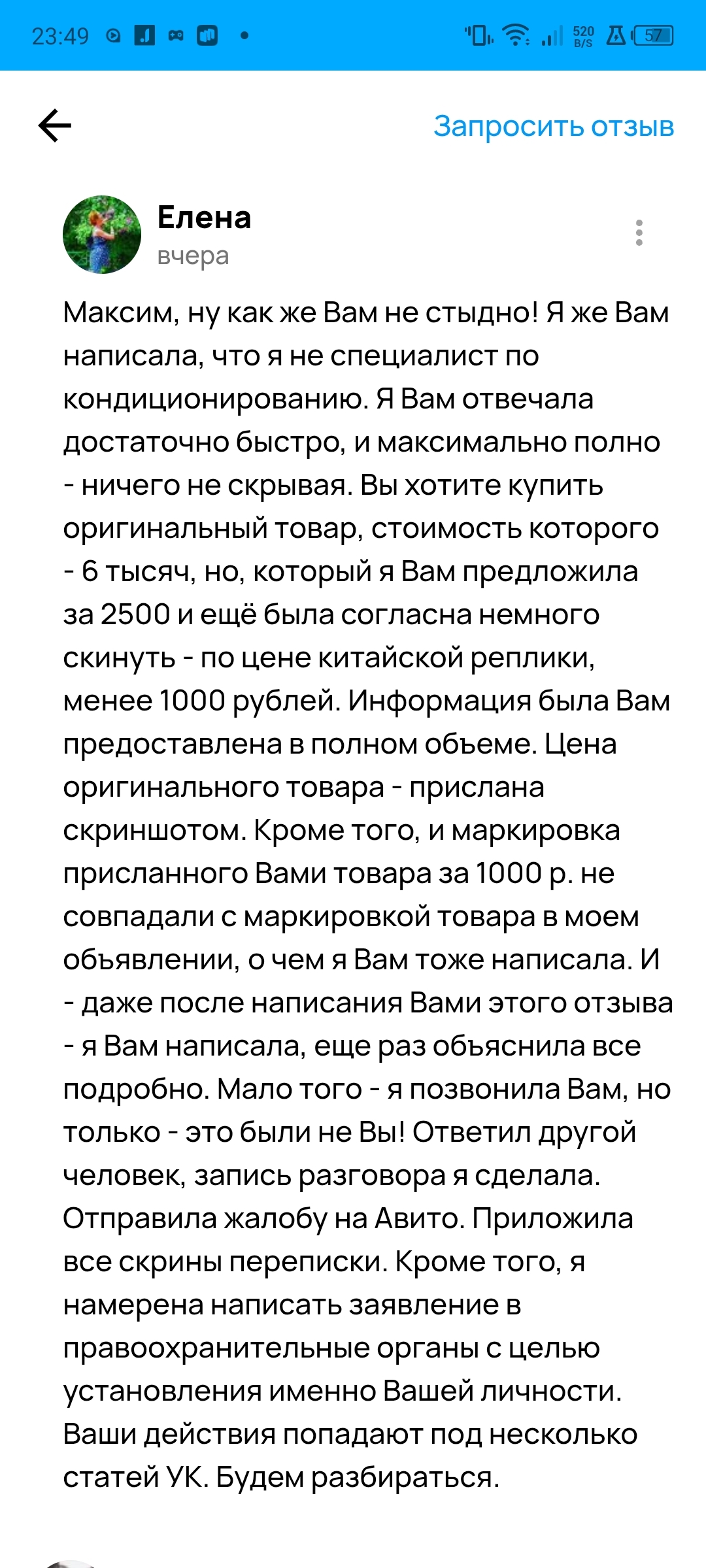 Я читала до этого момента истории о борьбе пикабушников с отрицательными отзывами на Авито. Ну, вот и до меня добралась несправедливость.