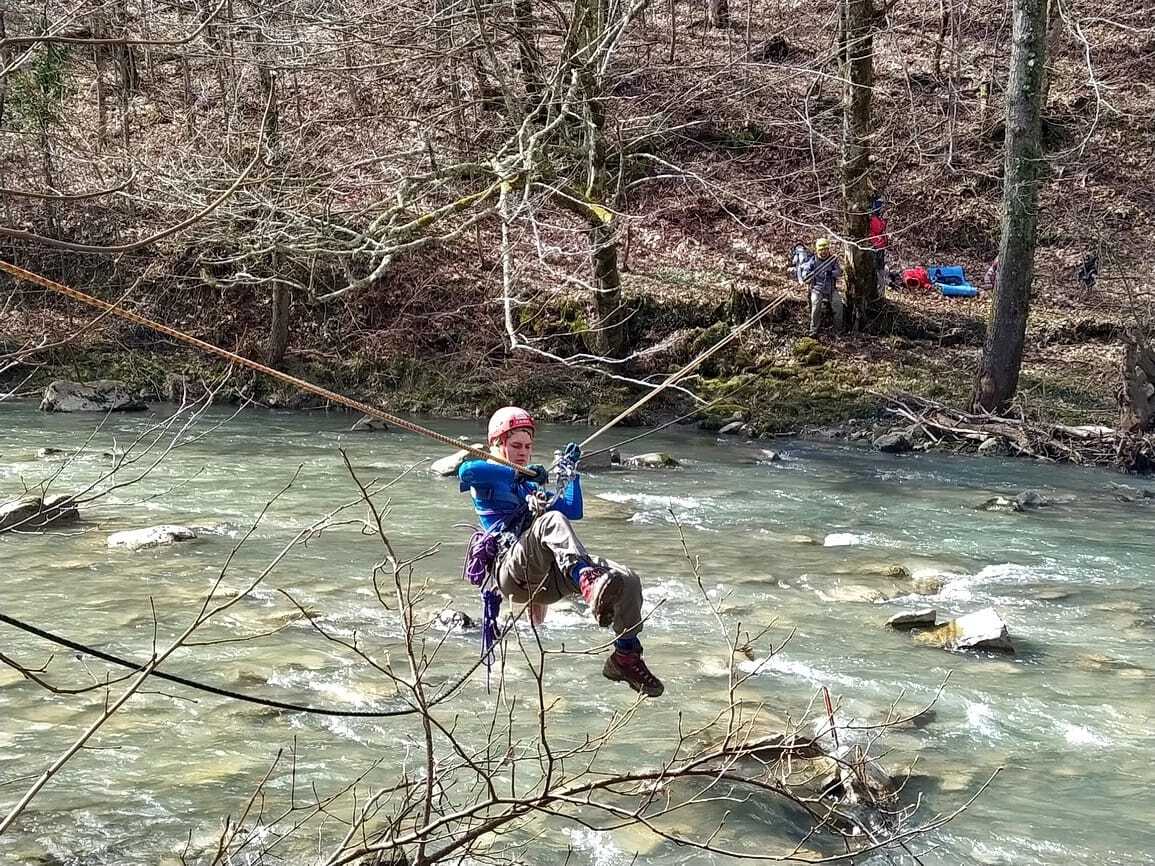Через 10 минут я как штык - в страховочной системе и каске, с кучей снаряжения. На плече 45м веревки. Сказали выбрать из присутствующих волонтёров напарника на этап. Я девушка хрупкая, выбираю максимально брутального Виктора.