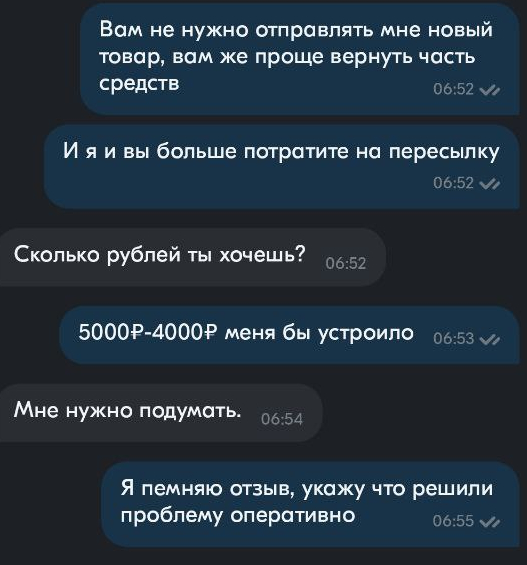 Я решил не оформлять возврат сразу и потребовать от продавца частичный возврат средств, так как не знал как оформить частичный возврат средств через озон.