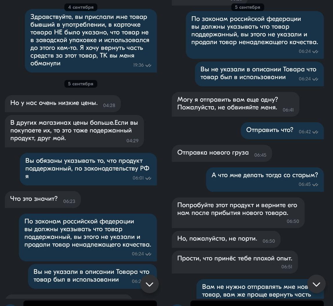 Мне было бы не принципиально, если бы в карточке товара было указано, что товар БУ, я не требовал бы компенсации и так далее, я бы просто купил такой же шлем у другого продавца.
