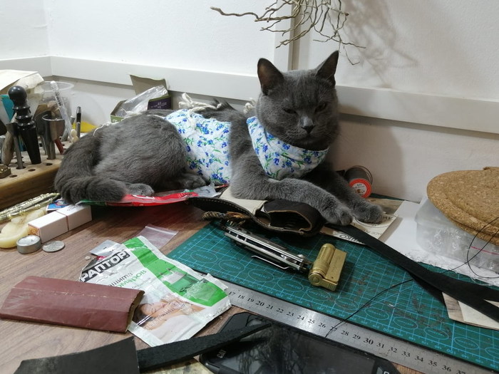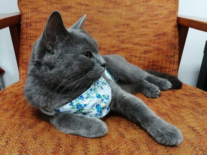 Так что какое-то время британка еще тусила у меня в мастерской в попоне послеоперационной (см фото ниже). А потом новые хозяева ее забрали к себе и все кончилось в итоге хорошо для этой кошки.