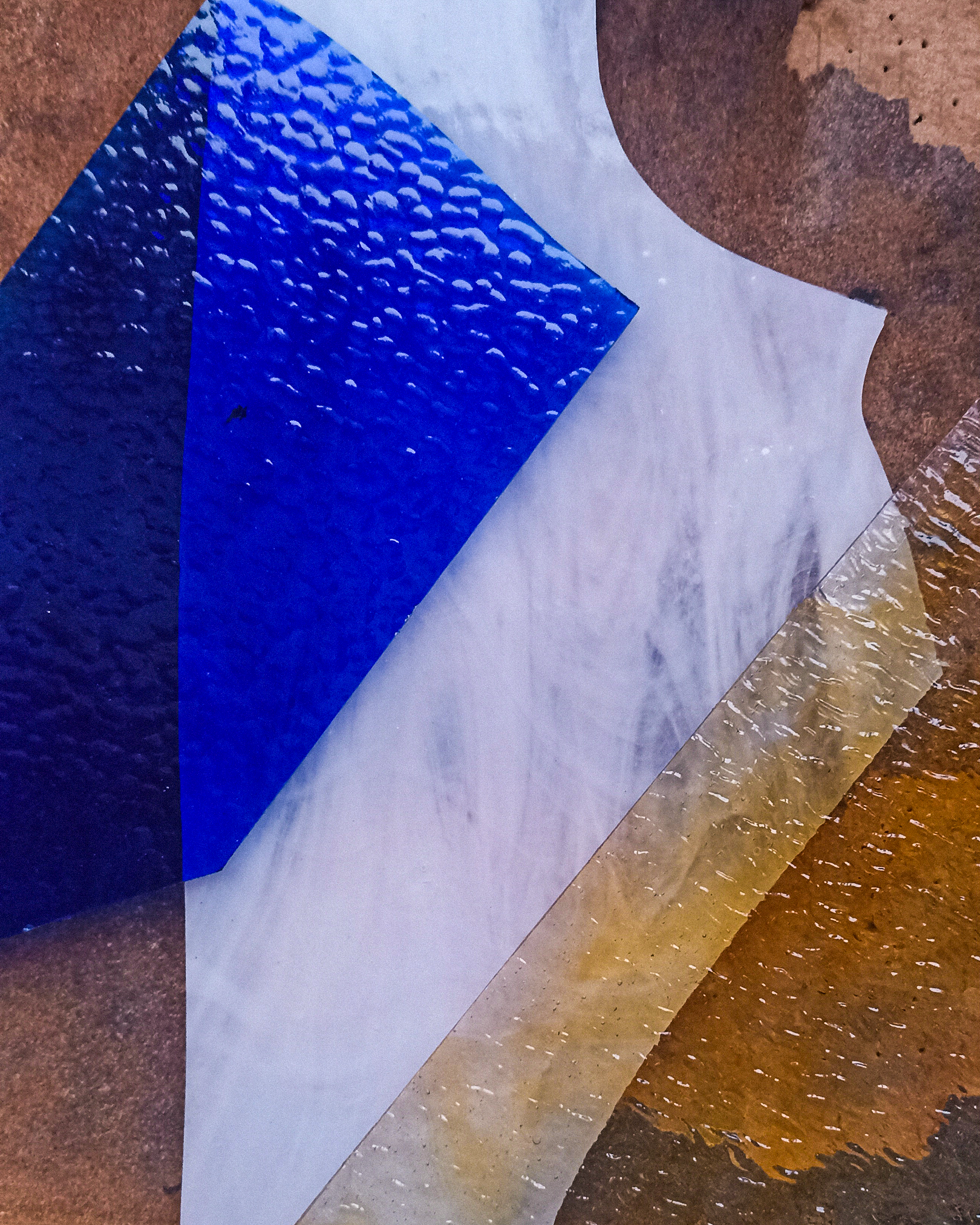 Нарезал стекло. Тут, признаюсь, к своему стыду, – нижняя синяя часть треснула. Взял слишком острый угол. Пришлось вырезать заново. Всегда так жалко, когда хороший кусочек стекла уходит в никуда… в коробочку для осколков🙃
