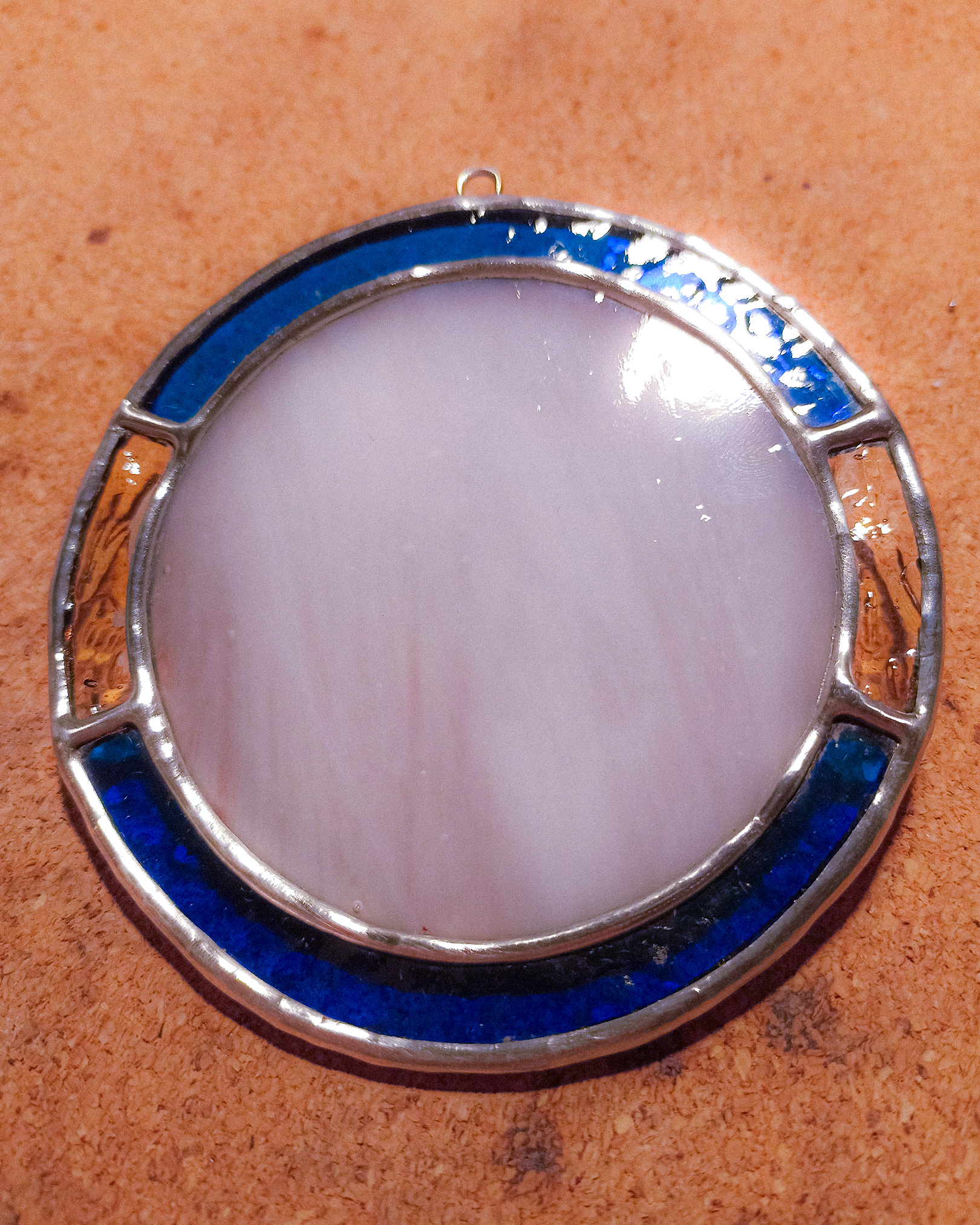 Шлифовка. Здесь помимо шлифовки с торца, снял фаску с фактурного стекла. Чтобы медная лента лучше держалась, ну и вид был более аккуратный. Приятно, когда всё начинает выглядеть как надо.