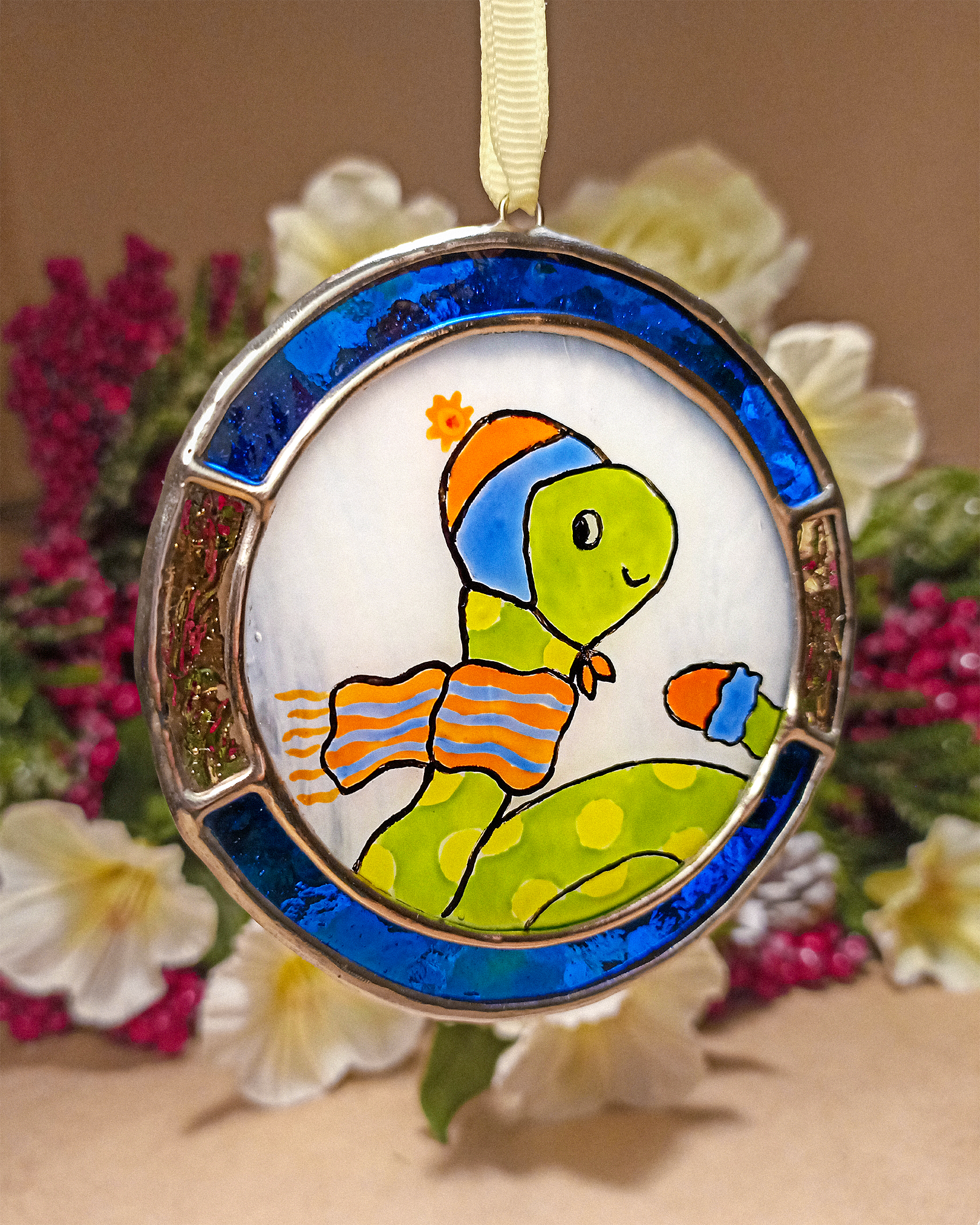 В финале остался только рисунок витражными красками – и всё! Зимняя змейка готова! 🐍