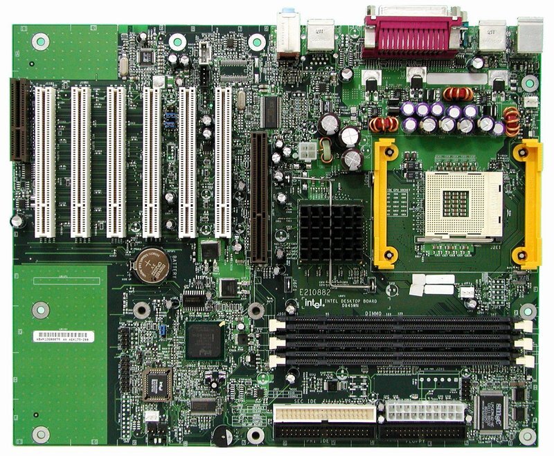 А внутренности системника хоть и не разобрать нормально, я бы оценил как что-то эпохи Pentium 4 под Soсket 478. Материнская плата очень напоминает Intel D845WN - разъёмы, расположение конденсаторов, доп-питание по центру, а не за процессорным сокетом.