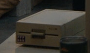 Системный блок. Уже пожилой, но явно помоложе бункера. Имеется 3.5" дисковод, а сверху у него сдвоенный 3.5"/5.25" с щелевой загрузкой. Среди фанатов ретро-железа ценится. Сбоку стоит коробочка для дискет, вроде пятидюймовых.