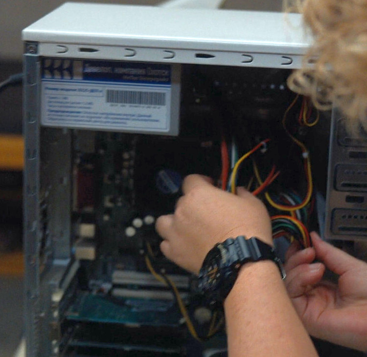 Сзади, впрочем, явно видно, что системник АТХ, плюс к нему ничего не подключено, кроме кабеля питания. Но в этом ничего странного — ин Совьет Раша уже в восьмидесятые везде использовались беспроводные клавиатуры и мониторы. И даже видеокарта не требовалась — по крайней мере, я её в этом системнике не вижу — ни встройку, ни дискретную.