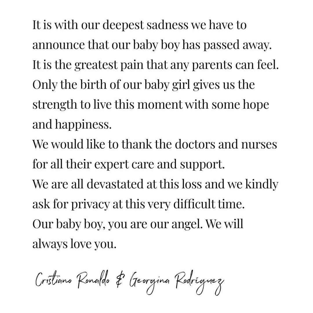 Криштиану Роналду сообщил о смерти своего новорожденного сына