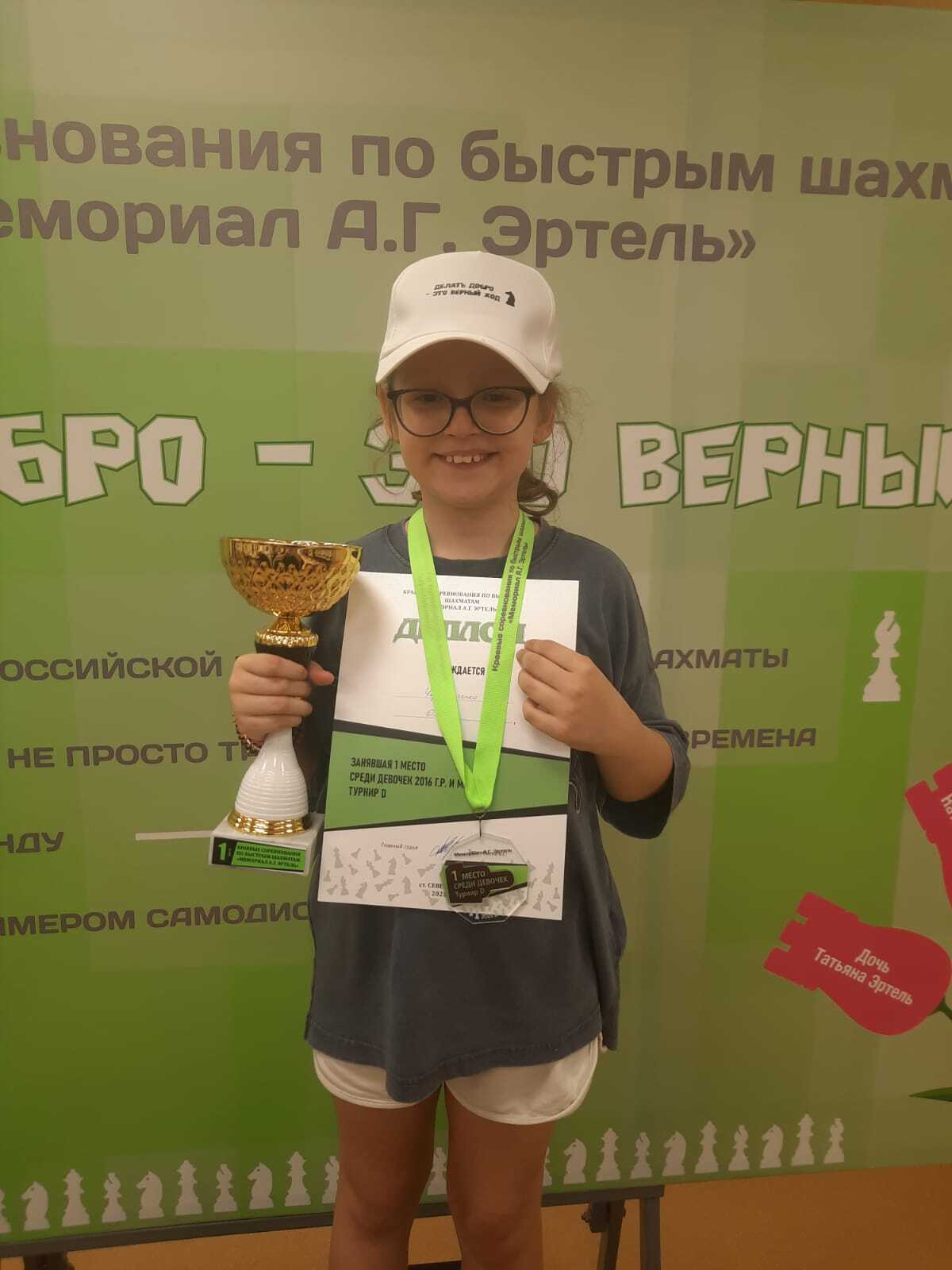 Участие в турнире мне понравилось, мой друг Миша со своей мамой приехали с собачкой которая нас развлекала и с которой мы играли между партиями.Зал для проведения турнира был просторным и удобным, мне понравился. В результате я заняла первое место в общем зачете среди мальчиков и девочек из 71 шахматиста. За две недели до начала турнира я усиленно готовилась, хотя после начала учебного года это стало гораздо труднее, мне практически не хватает на всё время и устаю.