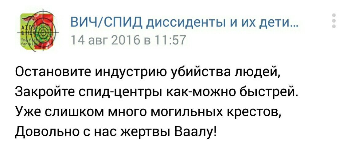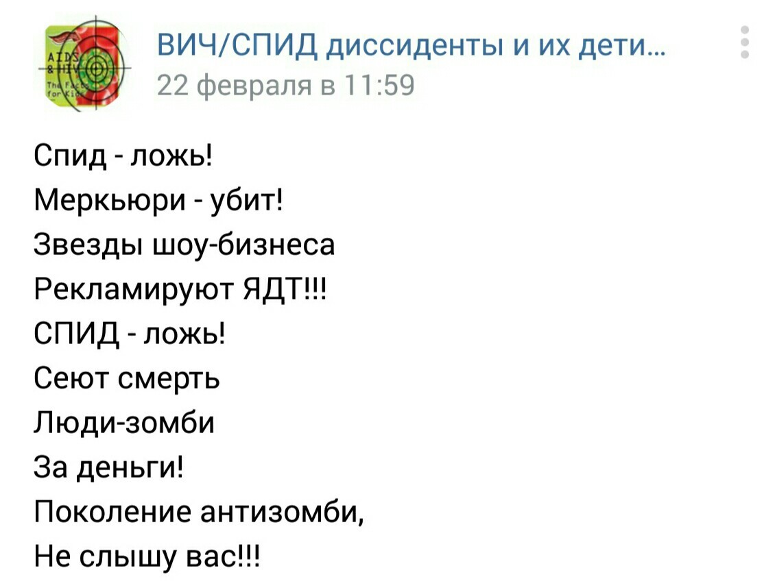 Сегодня я расскажу вам о группе людей, которую принято называть ВИЧ- диссидентами. Русским языком говоря- это люди и ВИЧ+ и ВИЧ-, которые отрицают общепринятость и доказанность того, что ВИЧ является инфекционным агентом ВИЧ-инфекции. Часть из последователей движения отрицают факт существования и выделения ВИЧ, а СПИД признают результатом различных факторов неинфекционной природы, чаще всего психоневрологической.