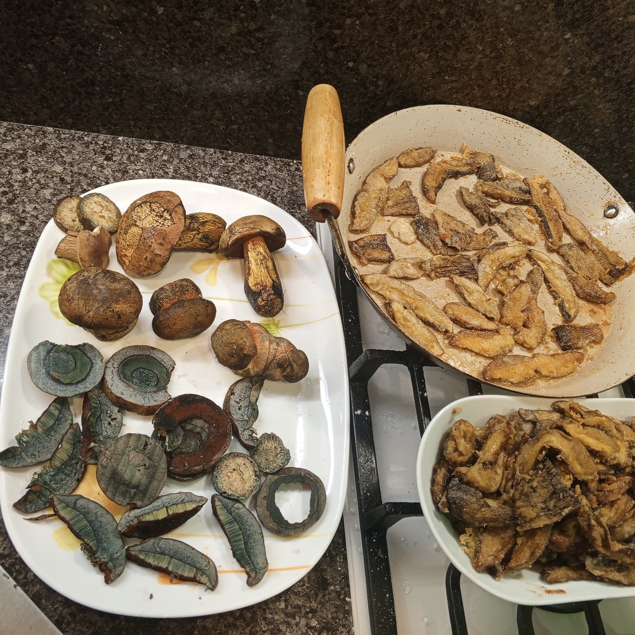 А вот тут все стадии приготовления, от свежего гриба , до конечного результата.