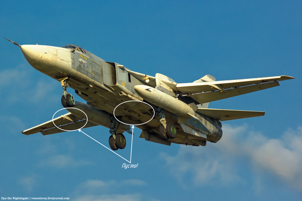 В наших ВВС летает также самый малочисленный вариант бомбардировщика, известный как Су-24М2, но никаких визуальных отличий от Су-24М я, как ни старался, найти так и не смог.