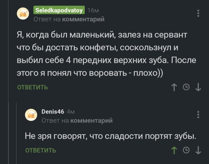 1341 Pofigist13 О вреде сладкого 5 лет назад #comment_186230242 Скриншот Комментарии на Пикабу Сладости 6 2 Ещё 0