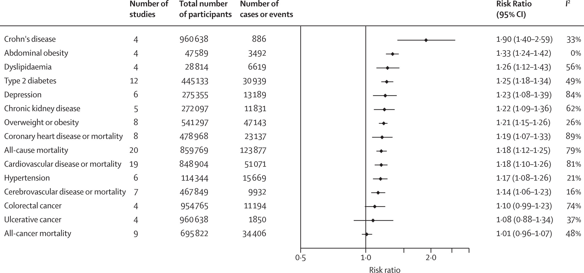 Избыточного веса / ожирения — риск на 21%
