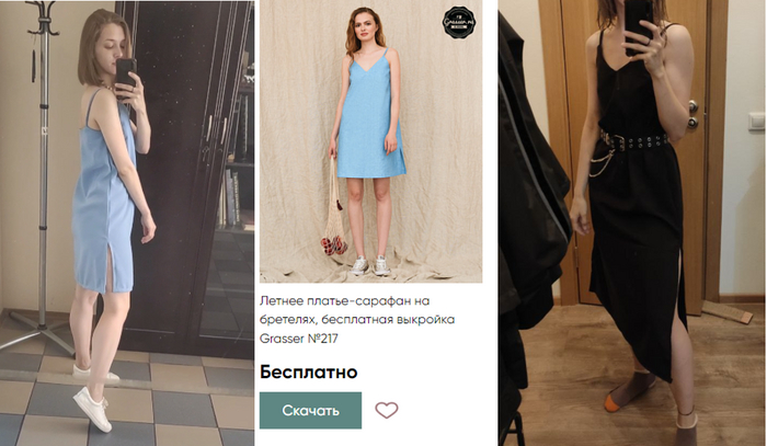 На фото – мой первый пошив по готовой выкройке и второй вариант платья, где я уже игралась с длиной и размерами.