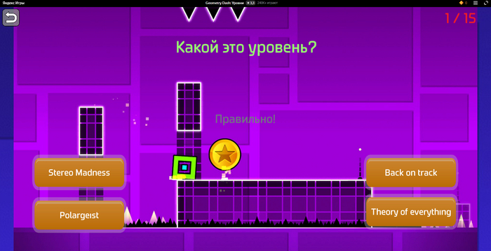 но вместо Geometry Dash, это оказался тест "угадай уровень"