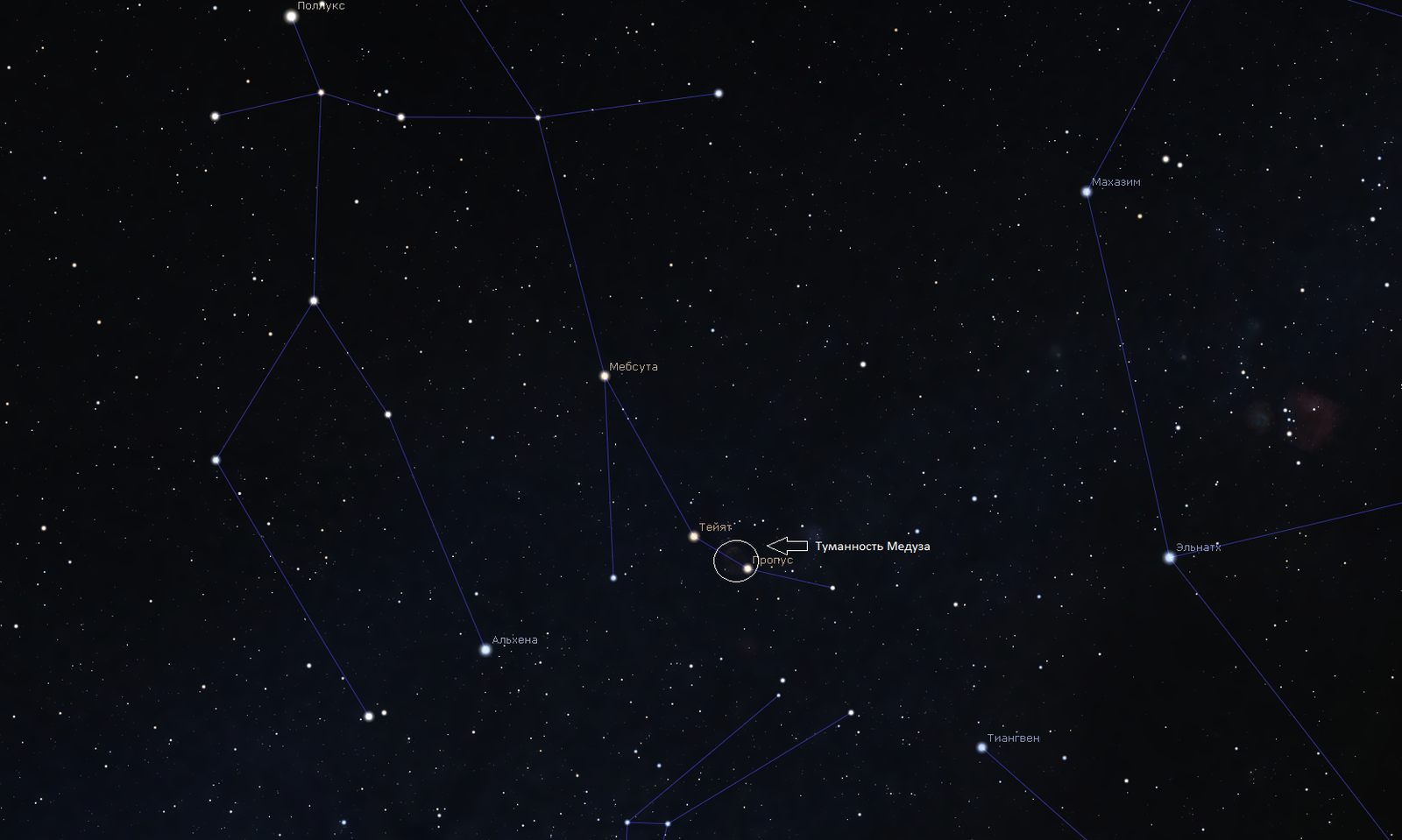 Расположение туманности Медуза.