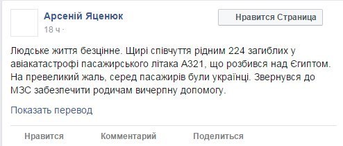 "искренние сочувствия родным 224 погибших". А про украинцев он сказал, что о своих гражданах побеспокоился в рамках своей должности.
