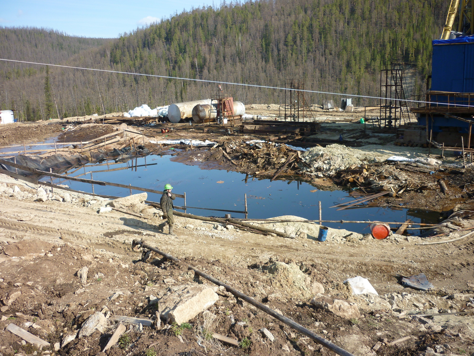 Много текста не будет. Бурение разведочных и эксплуатационных скважин в Восточной Сибири, в данном случае в Эвенкии, производится с тотальным нарушением экологических норм. В данном случае бурят на РУО - буровом растворе на углеводородной основе. По причине всеобщего разгильдяйства все лужи на этих фото представлены смесью нефти, дизельного топлива и воды. Каждый сантиметр кустовой площадки пропитан нефтью, солярой, в случае пожара выгорит все за считанные минуты, в т.ч. жилой поселок, находящийся в 50метрах от амбара.