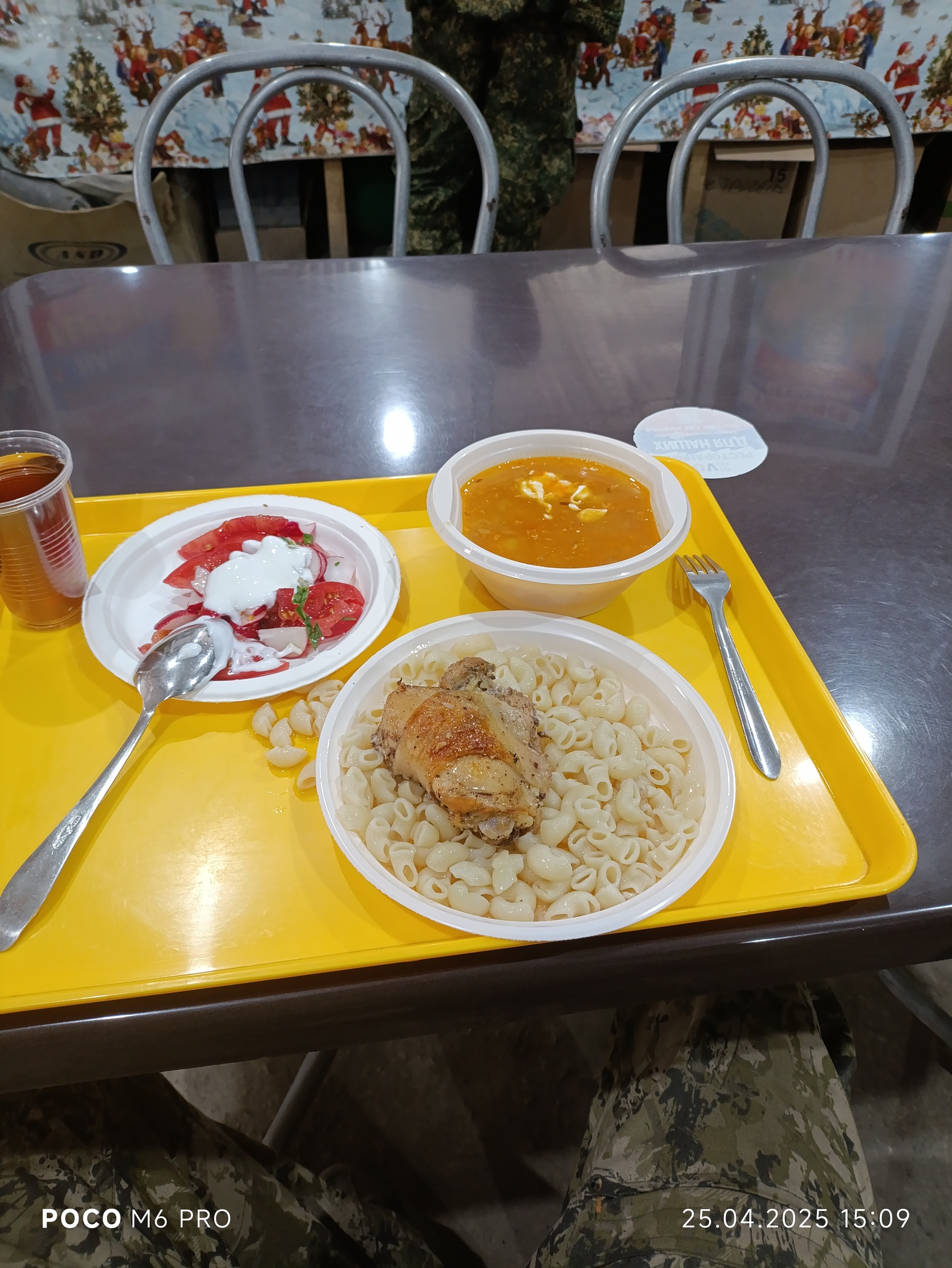Нашли столовую, оказалось, это волонтёры, кормят бесплатно. Вот так выглядит обед