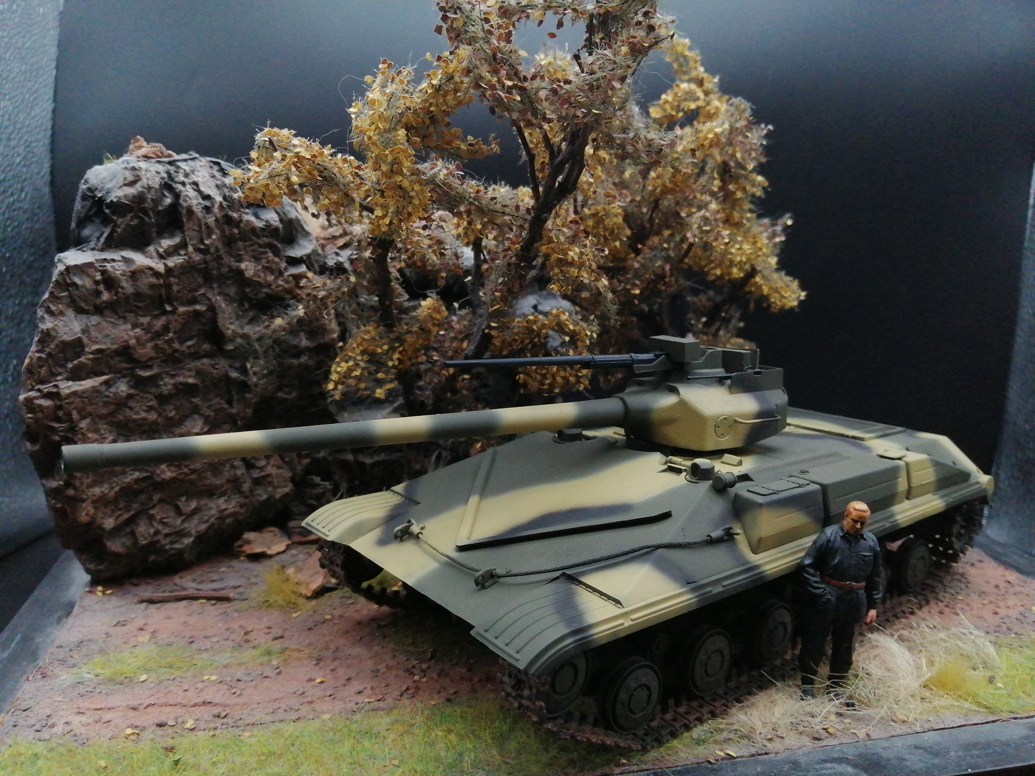 Проект разрабатывался в Харькове в 70 годах.На базе ходовой Т-64 предполагалась создать основной танк.Весь экипаж находился внизу,в корпусе.Башня не обитаемая.