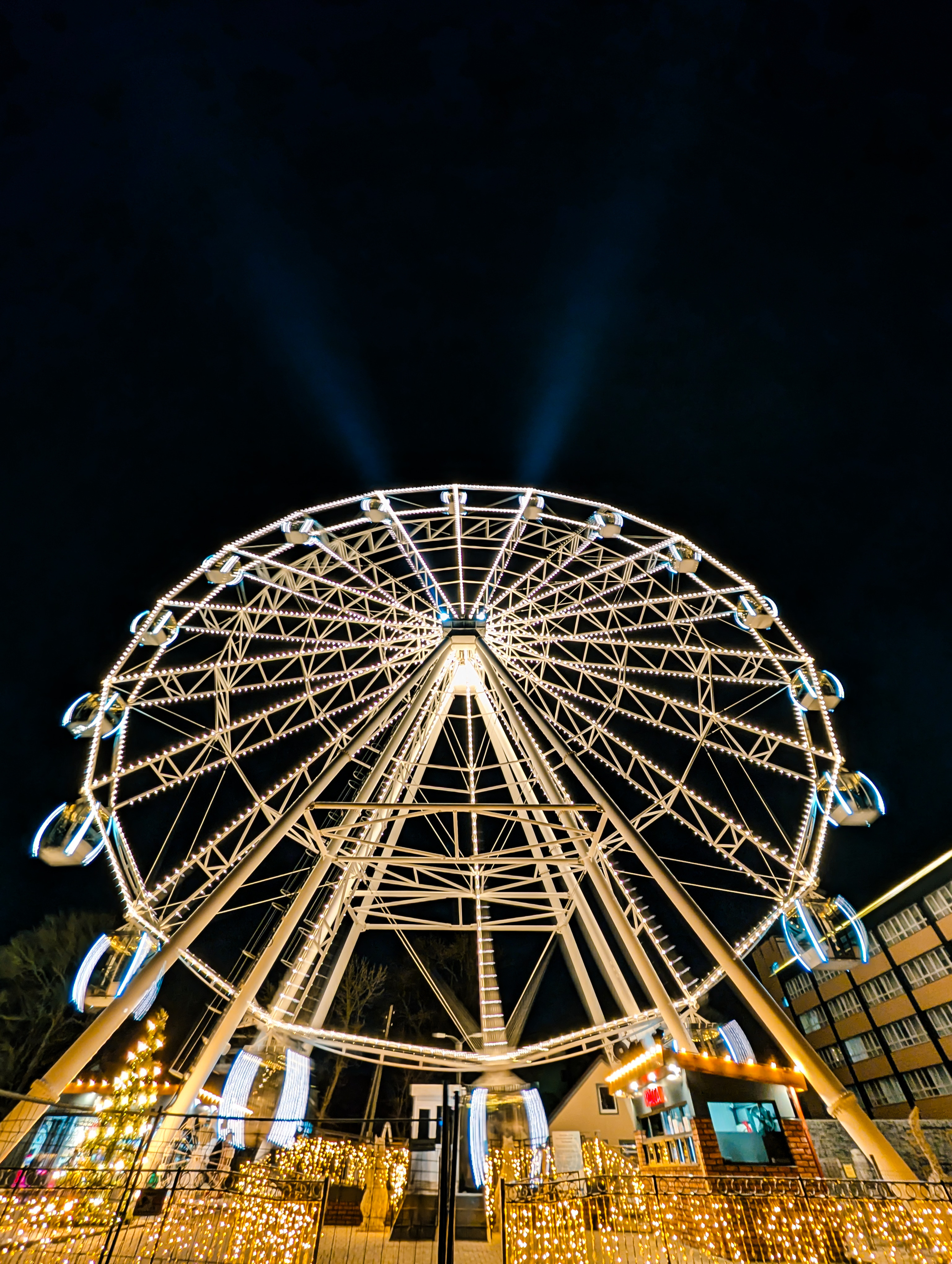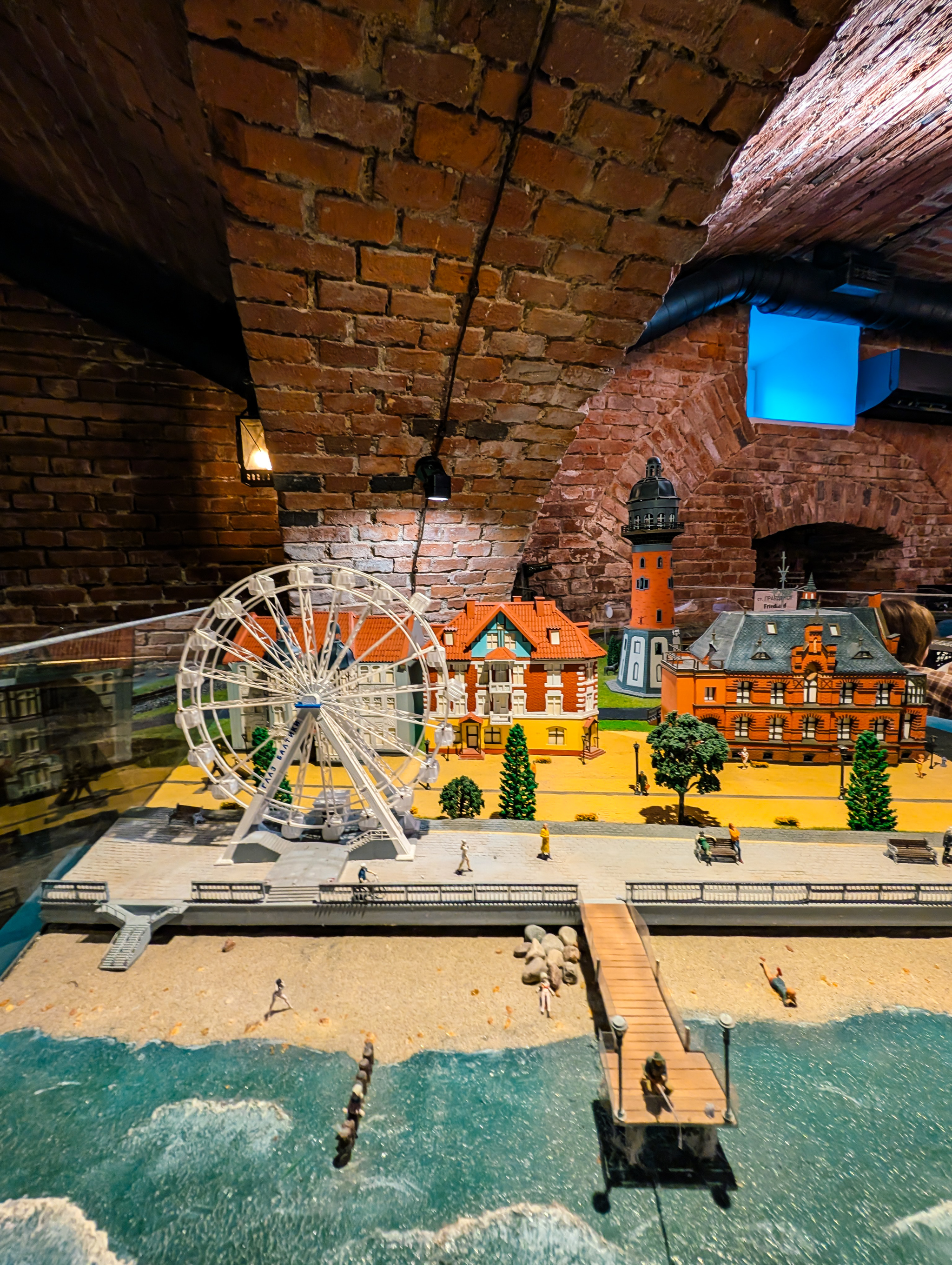 Несмотря на то что ехать из Калининграда относительно недалеко, пол часа максимум, прибываем уже после наступления темноты и сразу покажу полноразмерный вариант миниатюры Зелека из кафешки. Вот то самое колесо и море.