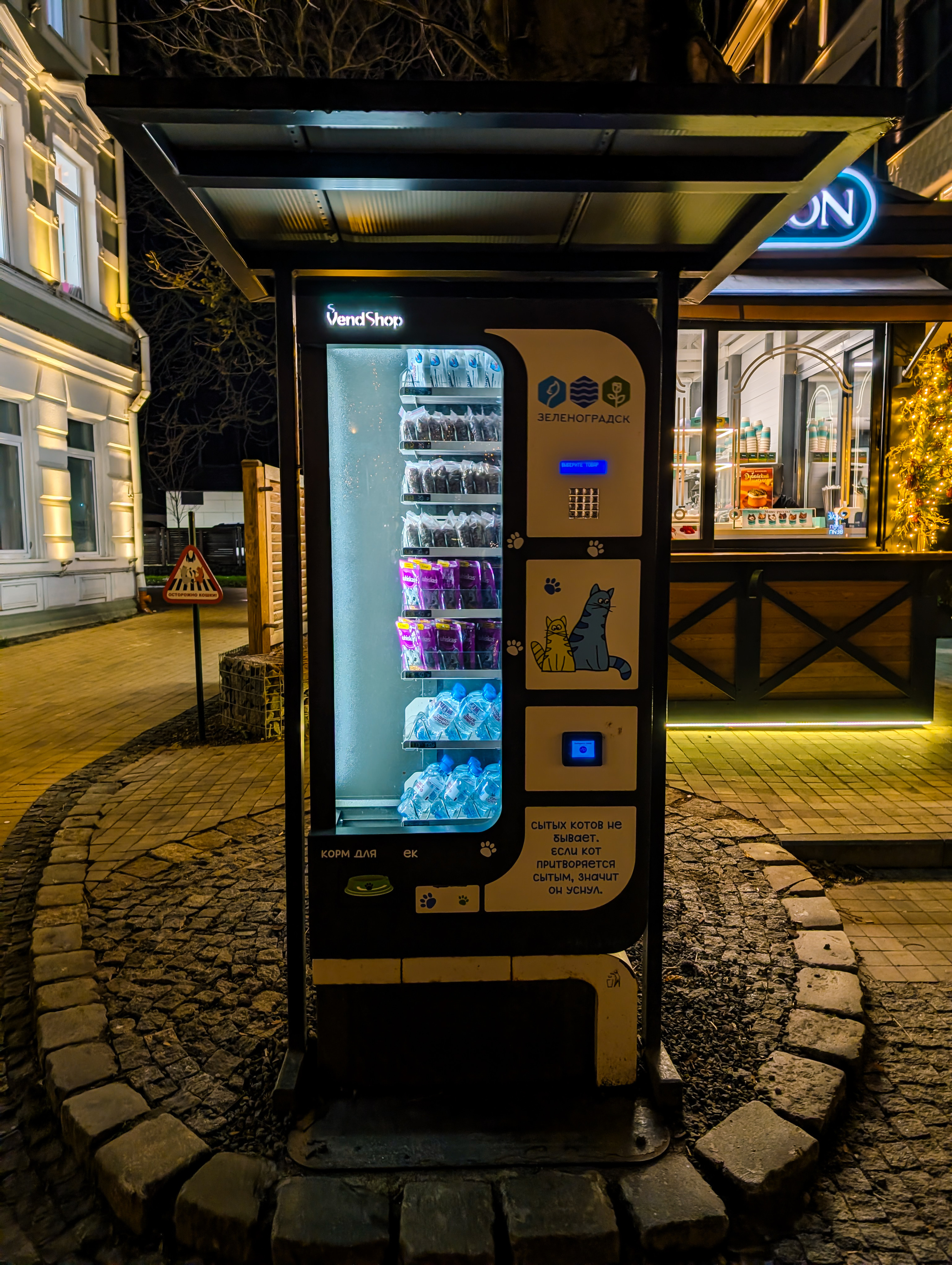 Помимо будочек и домиков при каждой лавке закреплен свой котэ. Я не шучу.