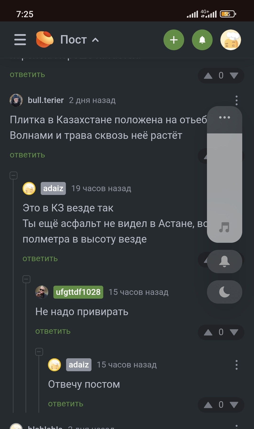 20 adaiz Обещанный пост для ufgttdf1028 7 месяцев назад Независимый 35 лет Казахстан Столица Центральные улицы (старый город) Конкретно - улица Кенесары практически вся Колейная!!! Асфальт клали примерно полгода назад. [моё] Казахстан Дорога Длиннопост 2 2 1 1 Ещё 0