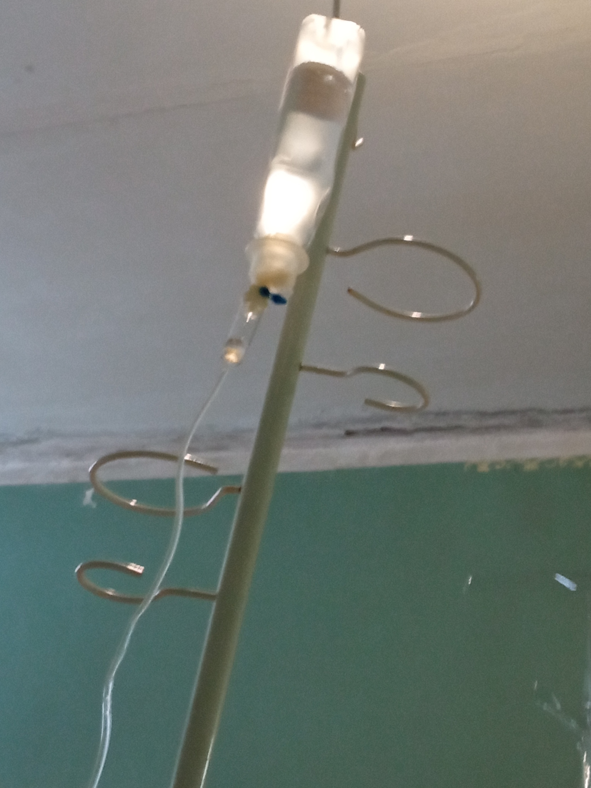 Позже принесли капельницу. Её приносят сразу любому заехавшему, в бутыль с физраствором, по словам дежурного врача, вколоты противосудорожные, противобактериальные, солевые и витаминные компоненты. В прошлый раз ставили две капельницы, одну с антибиотиком в физрастворе, другую — с витаминками и прочим. То ли фарма шагнула вперёд, что ли, как выразился один из соседей по палате в будущем, экономия.